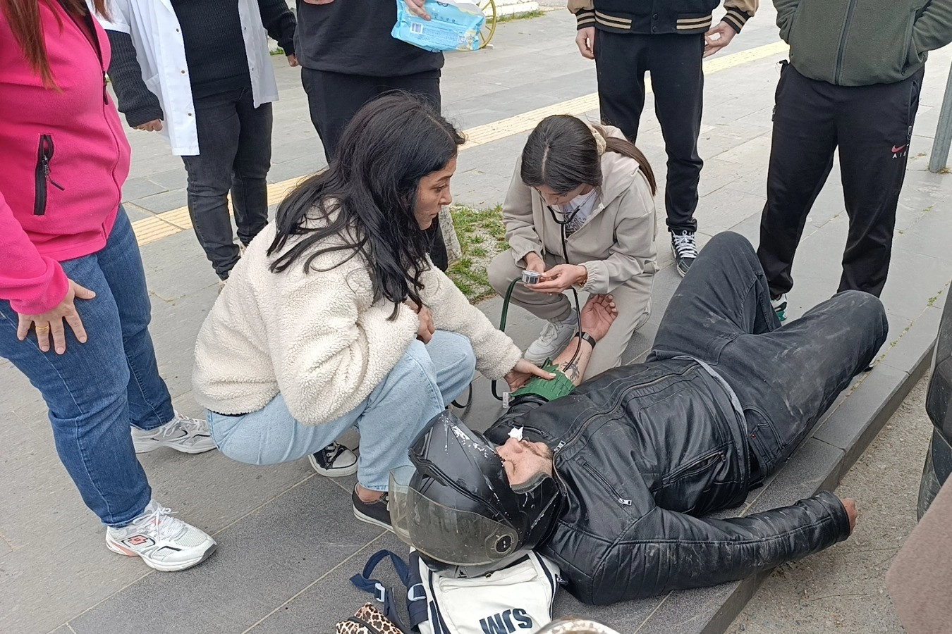Kaza, Manavgat ilçesi Antalya Caddesi'nde meydana geldi. Edinilen bilgiye göre, seyir halindeki Mehmet B.'nin kullandığı 07 ARM 810 plakalı motosiklet, aynı istikamette seyir halindeyken park etmek için yavaşlayan Gülbahar Z.'nin kullandığı 07 BVV 905 plakalı Toyota marka otomobille çarpıştı. Çarpmanın şiddetiyle yola savrulan motosiklet sürücüsü başındaki kask sayesinde kazayı hafif yaralı olarak atlattı. Yaralı motosiklet sürücüsünün yardımına kazanın meydana geldiği yerde bulunan sağlık ocağında görevli sağlıkçılar koştu. Elinde steteskop ve tansiyon aleti ile gelen sağlık görevlisi yaralıya ilk müdahaleyi yaparak sağlık durumunu kontrol etti. Yaralı sürücü, 112 Sağlık ekiplerinin olay yerindeki müdahalesinin ardından ambulansla hastaneye kaldırıldı. Kazayı trafik polisine anlatan sürücü Mehmet B., 65-70 kilometre hızla ilerlerken, önündeki otomobilin sağ tarafa dönmek için durduğunu, frene basmasına rağmen motosikletin tekerinin kayarak otomobile arkadan çarptığını belirtti.