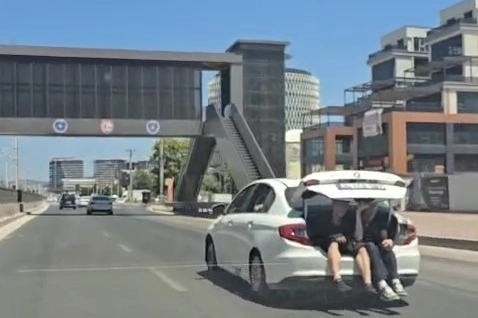 Osmangazi ilçesi İstanbul Yolu üzerinde seyir halindeki bir otomobilde yolcular bagajda taşındı. Bagaj kapısının da açık olduğu görülürken yolcular düşmemek için kapıya tutundu. Kilometrelerce süren tehlikeli yolculuk başka bir sürücünün kamerasına saniye saniye yansıdı.