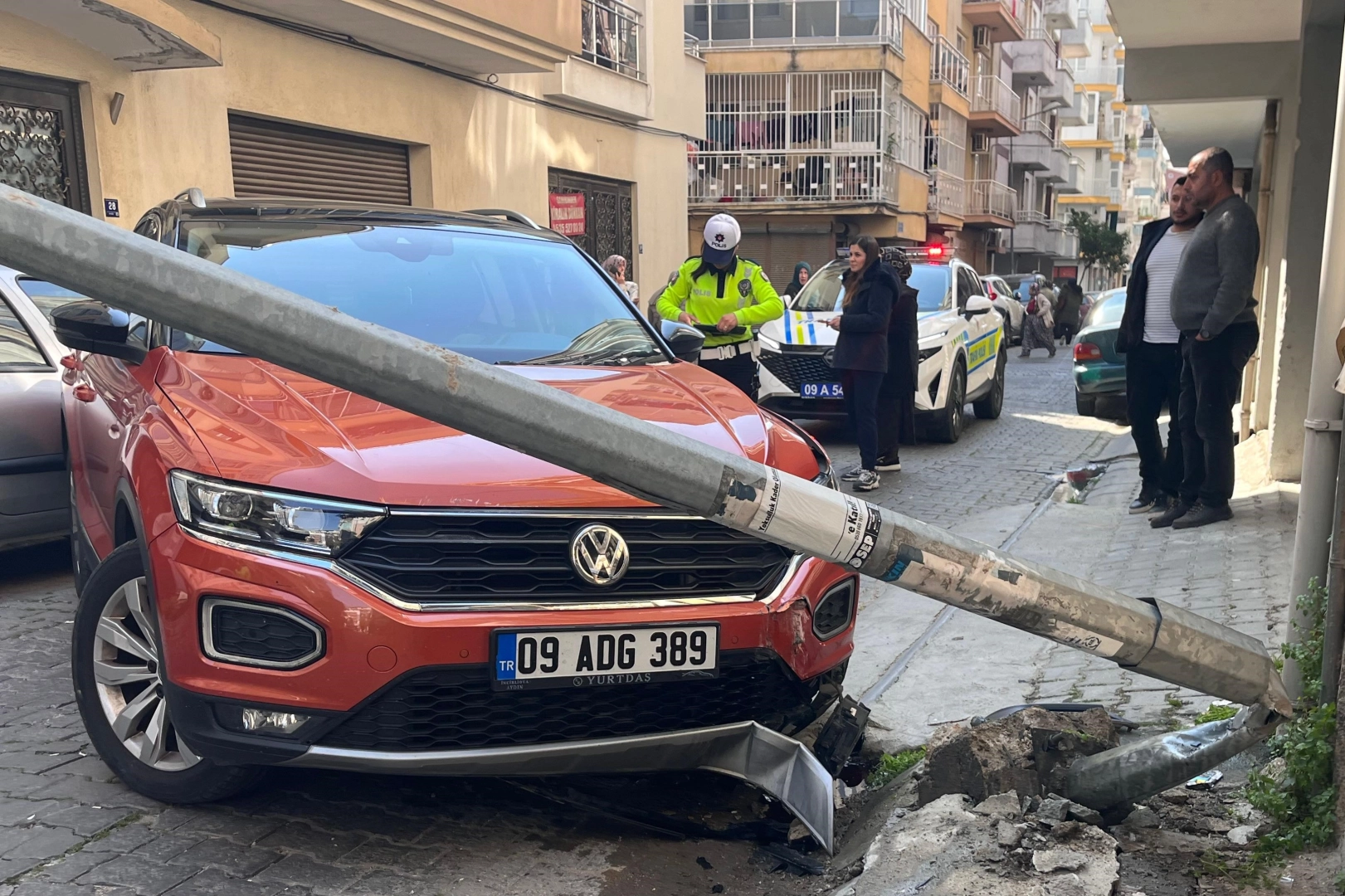 Kaza, Cuma Mahallesi 210 Sokak üzerinde saat 12.00 sıralarında meydana geldi. Edinilen bilgiye göre D.A. isimli kadın sürücü idaresindeki 09 ADG 389 plakalı otomobil, sürücüsünün park etmek istediği sırada yanlışlıkla fren yerine gaza basması sonucu sokak üzerinde bulunan aydınlatma direğine çarptı. Çarpmanın etkisi ile aydınlatma direği yerinden sökülerek devrildi. Kadın sürücü kazadan yara almadan kurtuldu. Park halindeki 2 otomobil de dahil olmak üzere toplamda 3 otomobil zarar gördüğü kaza sonrası sokak trafiğe kapandı. İhbar üzerine bölgeye polis ekipleri sevk edildi. Kısa sürede olay yerine gelen polis ekiplerinin çalışmaları ve aydınlatma direğinin ilgili ekiplerce yoldan kaldırılması sonucu sokak yeniden trafiğe açıldı.