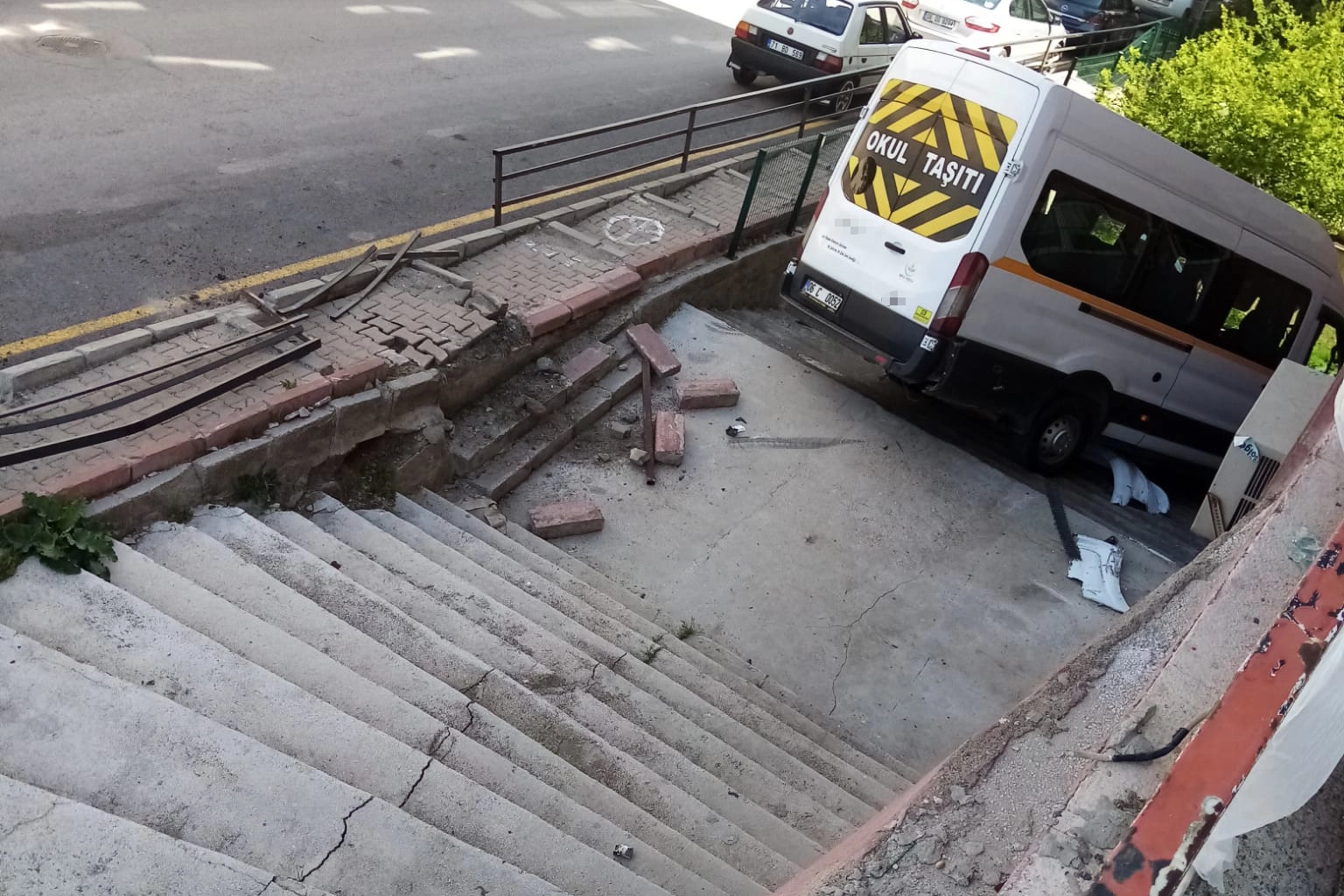 Olay, dün öğlen saatlerinde Mamak’ta meydana geldi. Alınan bilgilere göre, virajı dönmek için manevra yapan servis sürücüsü aracının kontrolünü kaybetti. Savrulan araç yol kenarındaki apartmanın merdivenlerine devrilerek durabildi. İlk anları kamera kaydına da yansıyan kazada can kaybı veya yaralanma yaşanmazken, apartmanda ve servis aracında maddi hasar oluştu. "Sürücü direksiyon hakimiyetini kaybederek binanın yan tarafına düştü" Olayla ilgili konuşan apartman yöneticisi Mustafa Gürsoy, "İki kadın karşıdan karşıya geçerken yoldan gelen servis aracı yol verdi. O arada dönüşü genişten alan servis aracı rögar kapağına çıktı. Sürücü direksiyon hakimiyetini kaybederek binanın yan tarafına düştü. Ölü ve yaralı yok. Ambulans geldi, sağlık ekipleri sürücüyü muayene ettiler. Herhangi bir şey çıkmadı. Ardından trafik polisi geldi ve tutanak tuttu. Belediyeye ait taşlara ve demirler zarar görmüştü. Onlar da inceledi ve gitti" diye konuştu.