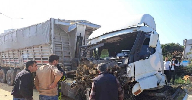 Hatay’ın Payas ilçesinde, önüne köpek çıkması nedeniyle ani fren yapan tıra arkadan gelen tahıl ürünü yüklü başka bir tır çarptı.