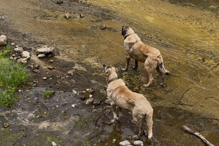 Bursa'nın Osmangazi ilçesinde derede mahsur kalan 2 Kangal cinsi köpek için itfaiye ekipleri olay yerine gelirken, bu sırada köprüden geçen köpeklerin sahibi dereye inip hayvanlarını kurtardı. O anlar kameraya yansırken, köprüdeki vatandaşlar olayı film izler gibi izledi.