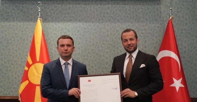 Kuzey Makedonya Dışişleri Bakanı Buyar Osmani, Türkiye’ye gerçekleştirdiği ziyarette, Kuzey Makedonya’nın Edirne Fahri Konsolosluk beratını iş adamı Eser Cevahir’e takdim etti.