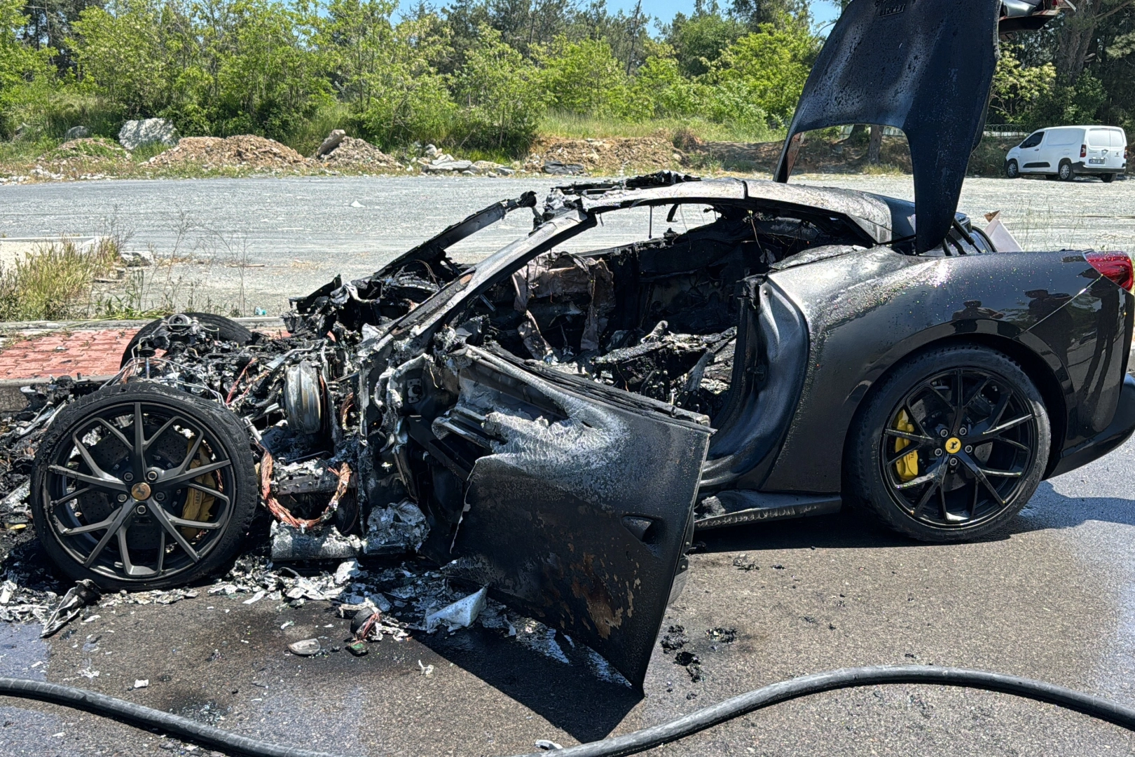 Olay, Eyüpsultan Hasdal - Kemerburgaz yolunda saat 13.00 sıralarında meydana geldi. Edinilen bilgiye göre, seyir halindeki Ferrari marka 34 CAA 08 plakalı otomobil henüz bilinmeyen bir nedenle yanmaya başladı. İddiaya göre, 20 milyon lira değerindeki aracın motor kısmında yükselen dumanları fark eden sürücü, otomobili durdurdu ve yangın tüpüyle alevlere müdahale etti. Ancak kısa süre sonra araçta patlama meydana geldi. 20 milyon lira değerindeki lüks otomobil alev alev yandı İhbar üzerine olay yerine itfaiye ve polis ekipleri sevk edildi. Polis ekipleri çevrede güvenlik önlemi alırken, itfaiye ekipleri ise yangını söndürüp soğutma çalışması yaptı. Olayda ölen ya da yaralanan olmazken lüks otomobil küle döndü. Polis olayla ilgili inceleme başlatırken, aracın alev alev yandığı anlar ise cep telefonu kamerasına yansıdı.