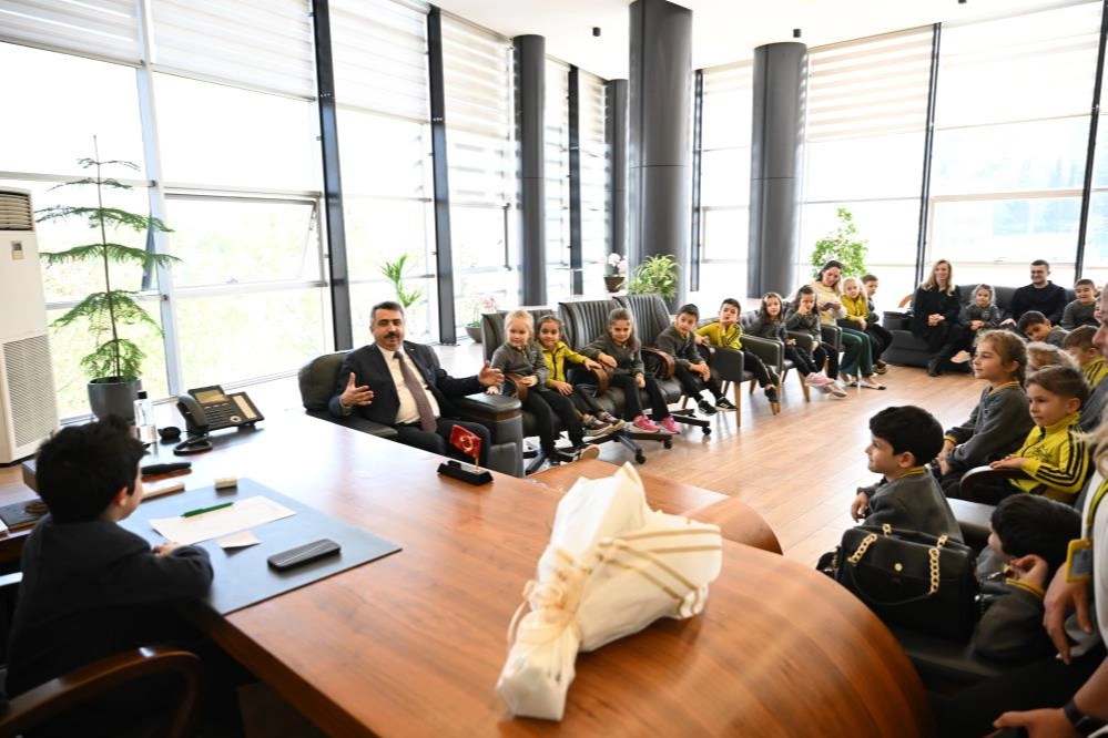 Yıldırım Belediye Başkanı Oktay Yılmaz, Bilsoy Anaokulu’nda eğitim gören öğrencileri makamında ağırladı. 23 Nisan Ulusal Egemenlik ve Çocuk Bayramı etkinlikleri kapsamında düzenlenen ve geleneksel hale gelen, çocukların temsili olarak yönetici koltuğuna oturmaları töreninde, kısa sürede olsa Yıldırım Belediye Başkanlığı koltuğunu emanet alan çocuklar, istek ve temennilerini Başkan Oktay Yılmaz’a ilettiler.