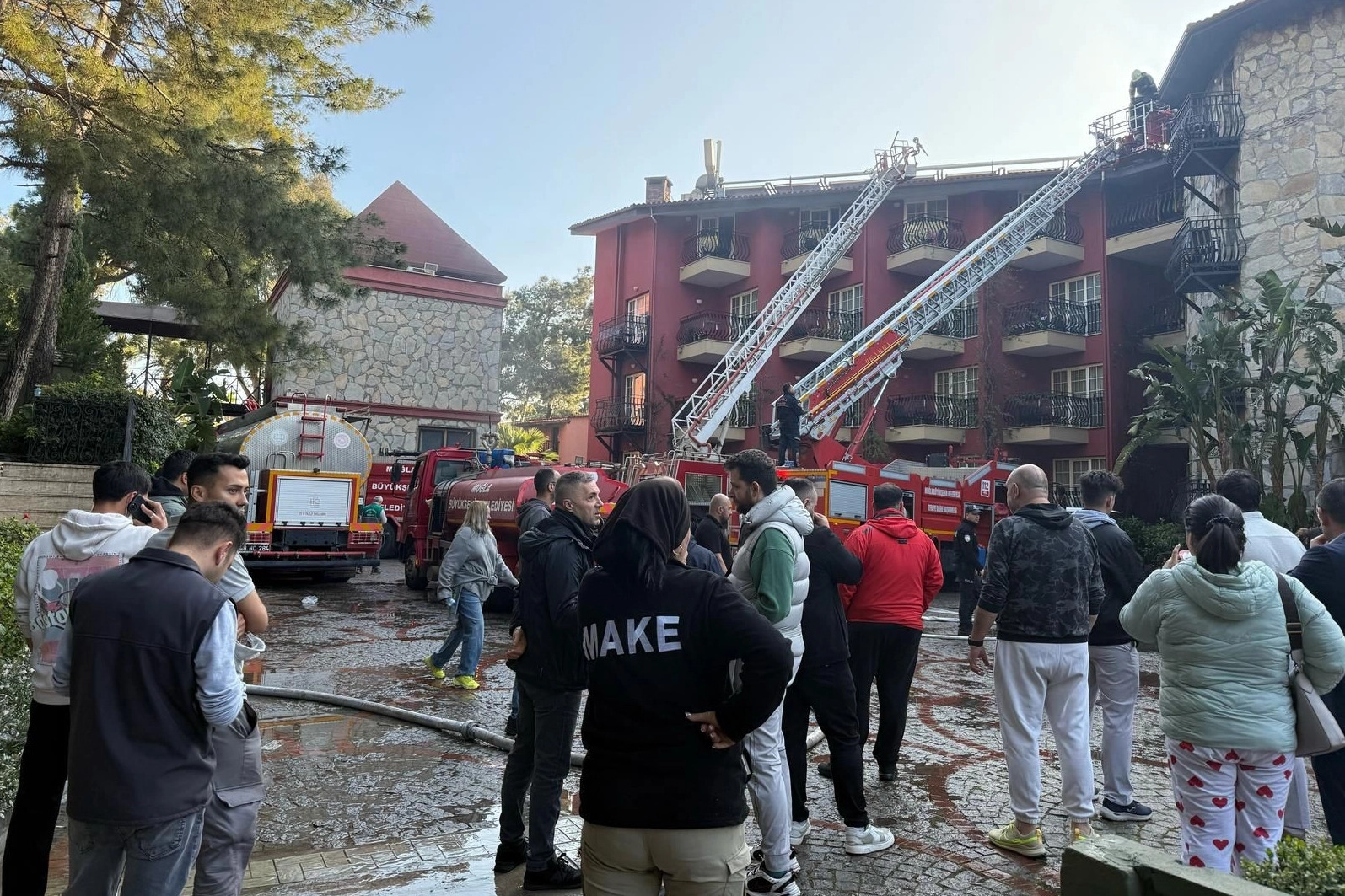 Yangın, Marmaris-İçmeler yolu üzerinde bulunan bir otelde sabah saatlerinde meydana geldi. Edinilen bilgiye göre, kazan dairesinden yükselen yoğun duman üzerine 112 Acil Çağrı Merkezi'ne ihbarda bulunuldu. İhbar üzerine bölgeye itfaiye, sağlık ve polis ekipleri sevk edildi. Kısa sürede olay yerine gelen Muğla Büyükşehir Belediyesi İtfaiye Daire Başkanlığı ekipleri yangına müdahale etti. Bu sırada otelde konaklayan 680 yerli ve yabancı turist güvenlik amacıyla tahliye edilirken, AFAD koordinesinde STK'lar MAKE ve SAR'da otelde misafirlerin tahliye işlemlerine katılarak itfaiye ekiplerine destek oldu. Ekiplerin hızlı müdahalesi sonucu yangın kontrol altına alındı. Yangından etkilenen 17'si yabancı uyruklu, 5'i çocuk toplamda 24 kişi kontrol amaçlı hastaneye kaldırıldı. Yangın sırasında otelde bulunan yangın kapıları ve sistemlerinin yenilenmiş olmasının can kaybı ve ağır yaralanmaların önüne geçtiği öğrenildi. Öte yandan otelden tahliye edilen misafirlerin, ilçedeki farklı otellere yerleştirileceği bildirildi. Yangının çıkış sebebine ilişkin inceleme ve soruşturma devam ediyor.