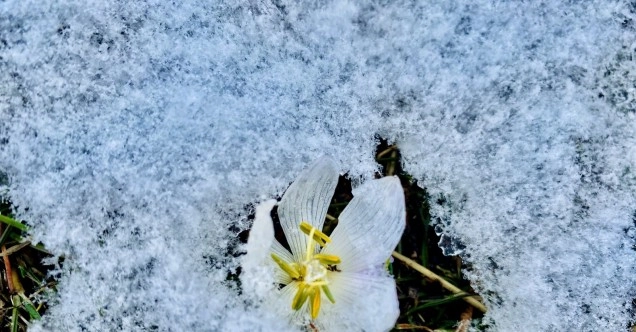 Ağrı’da Mart ayında etkili olan kar yağışı nedeniyle kardelenler kar altında kaldı.