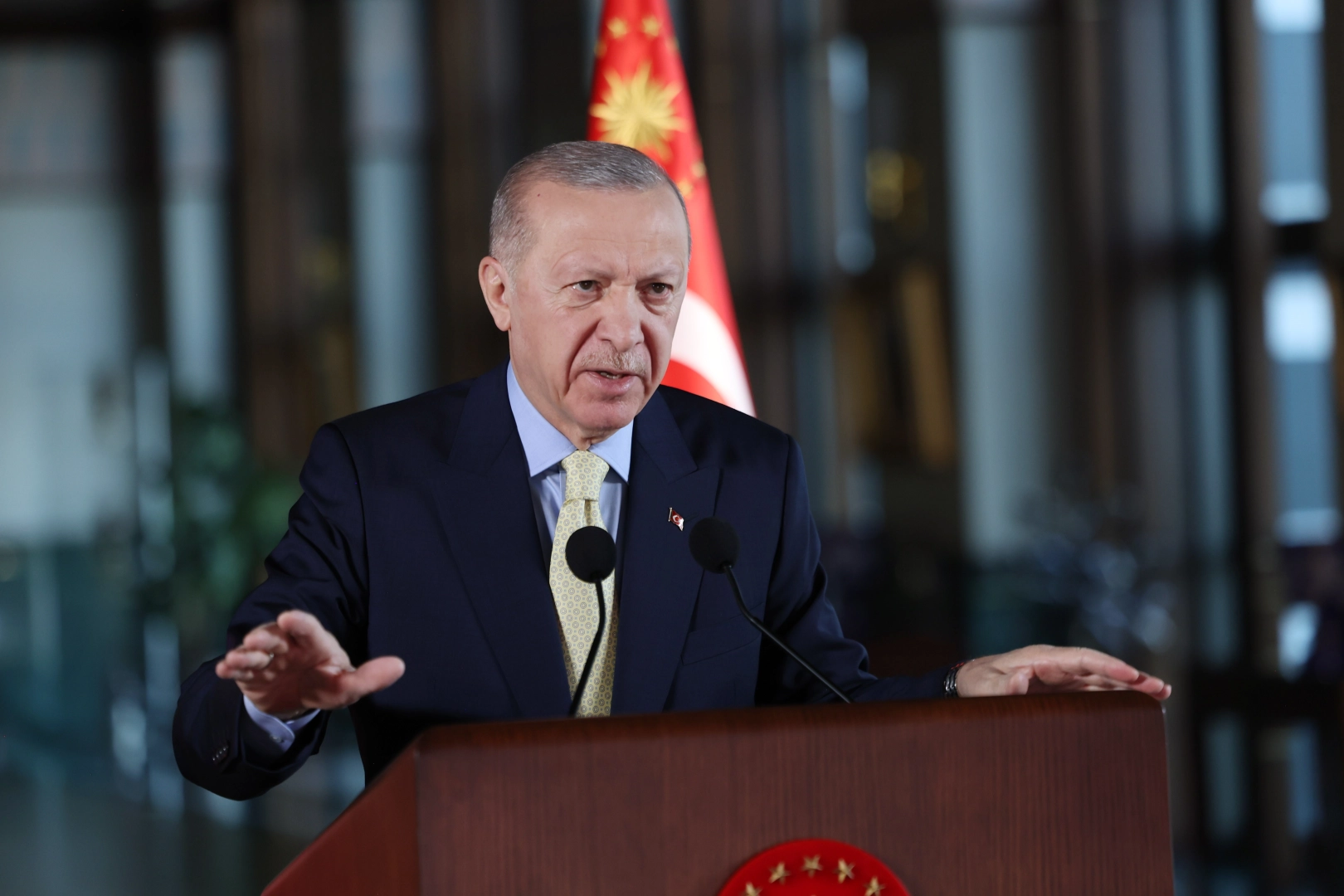 Türkiye Cumhuriyeti’nin sulhun, barışın, istikrarın tarafında olduğunu söyleyen Cumhurbaşkanı Erdoğan, "Türkiye hiçbir ayrım yapmadan tüm komşularında ve bölgesinde huzurun egemen olmasını samimiyetle istemektedir. Yıllardır istikrarsızlıklarla ve çatışmalarla boğuşan bölgemizde yeni krizlerin ortaya çıkmasını asla arzu etmiyoruz. Kuzeyimizden güneyimize, doğumuzdan batımıza, ülkemizin etrafında, artık merkezinde barış ve güvenliğin olduğu yeni bir iklimin hakim olması gerektiğine inanıyoruz. Gazze'de zulüm ve katliam son bulsun, Suriye de 14 yıldır hasretini çektiği huzur ortamına kavuşsun, Rusya-Ukrayna savaşı bir an önce adil bir barışla nihayete ersin istiyoruz. Bunları da öyle birileri gibi laf olsun diye söylemiyor, tüm kalbimizle barışa inandığımız için her fırsatta vurguluyoruz. İnşallah bunun için çalışmaya, bunun için mücadele etmeye, bunun için sorumluluk almaya devam edeceğiz" diye konuştu.