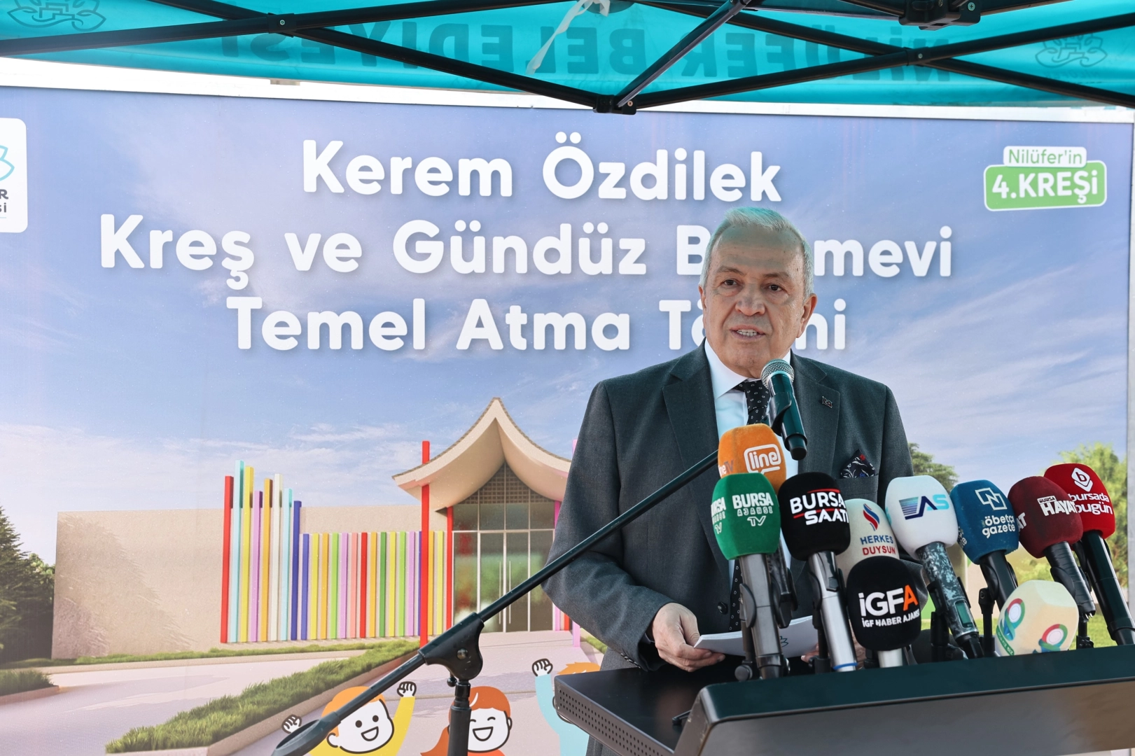 Nilüfer Belediye Başkanı Şadi Özdemir konuşmasına, 18 Mart Çanakkale Zaferi ve Şehitleri Anma Günü nedeniyle şehit ve gazileri anarak başladı. Çocuk eğitiminin önemli basamağını oluşturan, bir eğitim kurumunu daha kente kazandırmanın mutluluğunu yaşadıklarını belirten Başkan Şadi Özdemir, "Kadınlar, çocuklar ve gençler bizim önceliklerimiz. Kreş ve yurt gibi yatırımları çok önemsiyoruz. Hizmette olan kreşlerimize gösterilen ilgi, bu alandaki eksikliği de ortaya çıkardı. Çalışan kadınların, çocuk bakımıyla ilgili sorunlarına çözüm üretmek için daha çok kreş açmak istiyoruz. Buraları kadınların özgürlüğü, çocuklarımızın da geleceğe hazırlandığı kurumlar olarak görüyoruz. Bu nedenle 5 yıl içinde 25 kreşi hayata geçirmeyi hedefliyoruz" dedi.