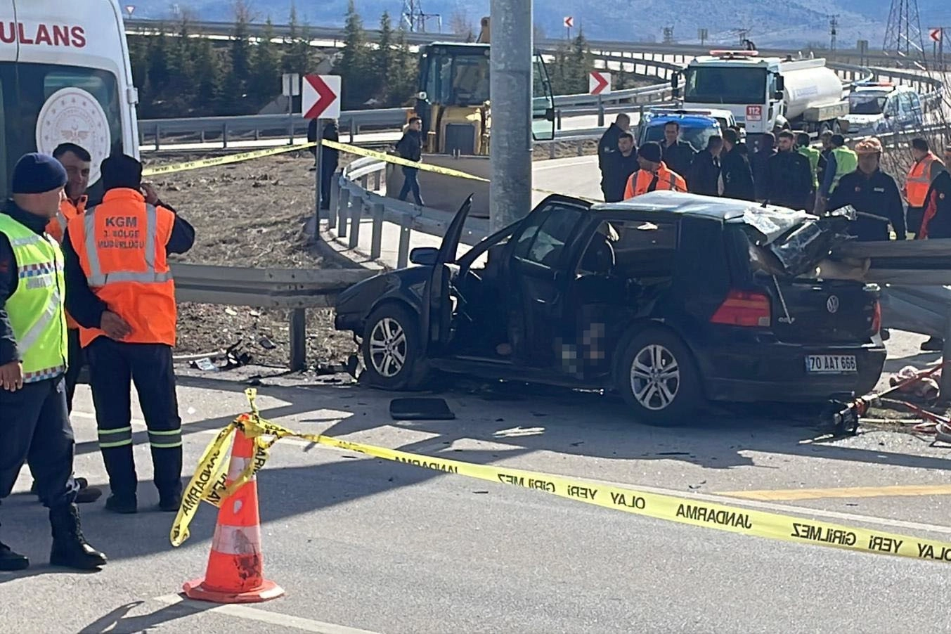 Kaza, Karaman-Konya karayolunun 31. kilometresi Kazımkarabekir ilçesi yakınlarında meydana geldi. Edinilen bilgiye göre, Ali Günay (43), yönetimindeki 70 AAT 666 plakalı Volkswagen marka otomobil sürücüsünün direksiyon hakimiyetini kaybetmesi sonucu kontrolden çıkarak yol kenarındaki demir bariyerlere ok gibi saplandı. Diğer sürücülerin ihbar üzerine kaza yerine sağlık, itfaiye, AFAD, polis ve jandarma ekipleri sevk edildi. Kaza yerine varan ekipler sürücü ve eşi Ayşe Günay'ın (36), olay yerinde feci şekilde can verdiğini belirledi. Kazada yaralanan aileni 3 yaşındaki kızları E.H.G. ise ambulansla kaldırıldığı Karaman Eğitim ve Araştırma Hastanesi'nde tedavi altına alındı. Cumhuriyet Savcısının kaza yerinde yaptığı incelemenin ardından hayatını kaybeden karı-kocanın cenazeleri itfaiye tarafından araç içerisinden çıkarılarak kızlarının kaldırıldığı hastanenin morguna kaldırıldı. Kazayla ilgili tahkikat başlatıldı.