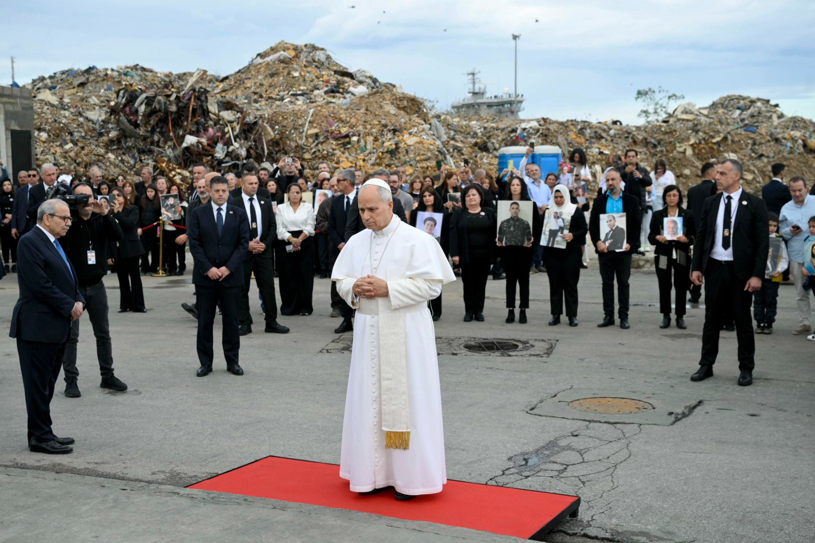 Papa 14. Leo, Lübnan ziyaretinin son gününde 2020 yılında 200'den fazla kişinin ölümüne, 7 binden fazla kişinin yaralanmasına yol açan patlamanın gerçekleştiği Beyrut Limanını ziyaret etti. Limanda dua eden Papa 14'üncü Leo, patlamada hayatını kaybedenlerin ve yaralananların aileleriyle bir araya geldi. Papa daha sonra Beyrut sahilinde 150 bin kişinin katılım gösterdiği ayini yönetti. Fransızca konuşan Papa, Lübnan ve Orta Doğu'da barış çağrısında bulundu.