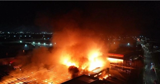 Parfüm depsunu saran yangın drone ile havadan da görüntülendi. Yangının etkisiyle fabrikanın duvarları, çatıları tamamen çökerken alevlerin arasında patlamalar halen devam ediyor.