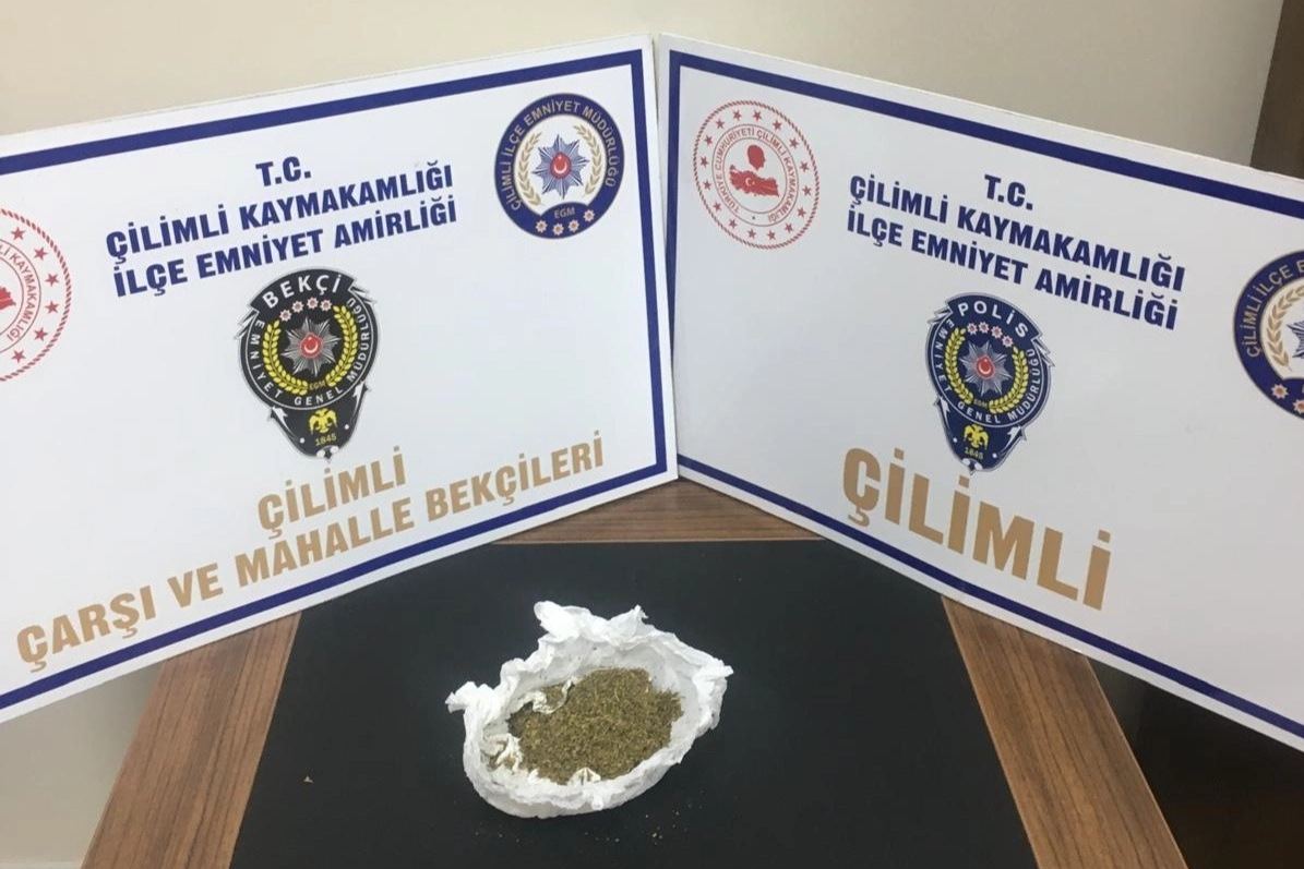 Edinilen bilgiye göre, Çilimli İlçe Emniyet Müdürlüğü ekipleri, Topçular Mahallesi Düzce Caddesi üzerinde yaptıkları uygulamada durumundan şüphelendikleri aracı durdurdu. Araç içerisinde bulunan G.M., S.Ç. ve M.Ç. isimli şahıslar ile araçta yapılan aramada 23,59 gram bonzai maddesi bulundu. Gözaltına alınan şahıslardan G.M. çıkarıldığı mahkemece tutuklanarak cezaevine gönderildi.