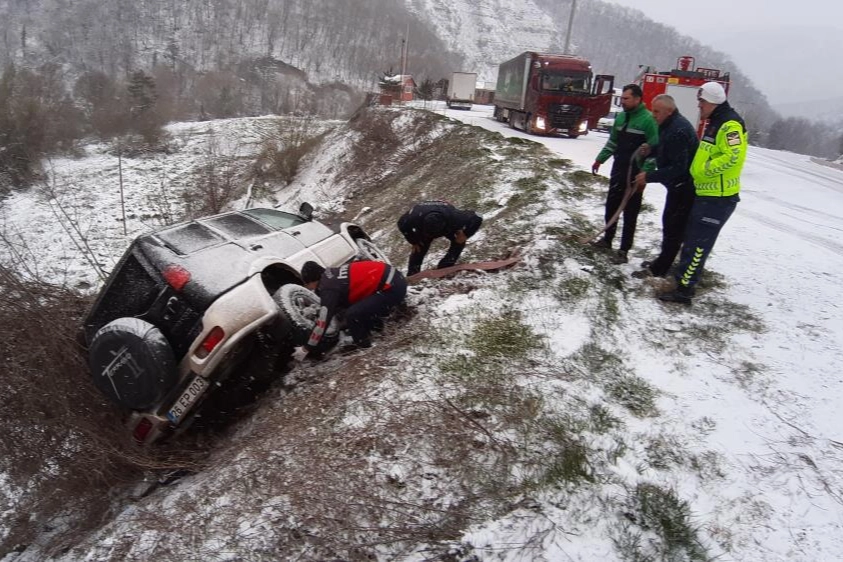 Kaza, Mudurnu Taşkesti Karayolu Kavakaltı mevkisinde meydana geldi. Edinilen bilgiye göre, Yunus isimli sürücü, 26 EP 003 plakalı cipiyle seyir halindeyken, kar yağışı sebebiyle kayganlaşan yolda direksiyon hakimiyetini kaybederek şarampole devrildi. Devrildiği yerde bulunan ağaç, aracın yuvarlanmasını engelledi. Araçta mahsur kalan vatandaş, korna çalarak çevreden yardım istedi. Korna sesini duyan bir sürücü durumu fark ederek 112 Acil Çağrı Merkezi'ne haber verdi. İhbar üzerine olay yerine itfaiye ve jandarma ekipleri sevk edildi. Kısa sürede olay yerine gelen ekipler, aracın yuvarlanmaması için halatla bağladıktan sonra sürücüyü araçtan çıkardı. Sürücü şans eseri yara almadı. Sürücü, ağaç sayesinde kurtulduğunu belirtti. Araç bulunduğu yerden vinç yardımıyla çıkarılırken kazayla ilgili inceleme başlatıldı.