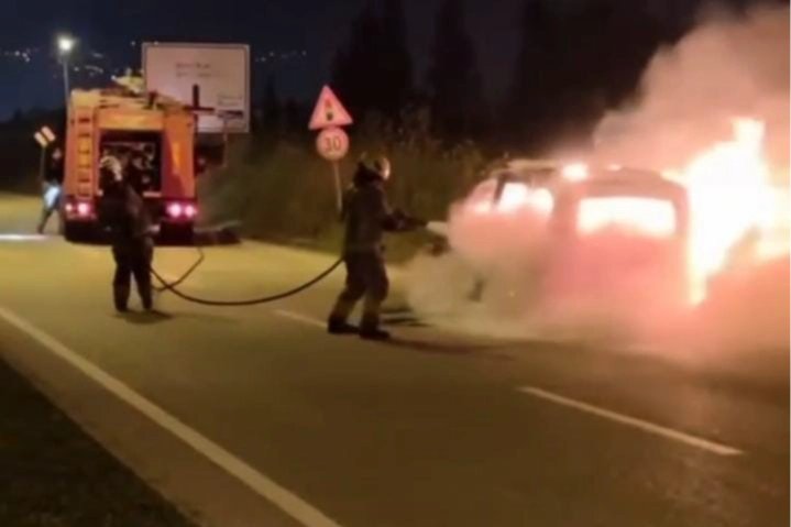 Seyir halindeyken alev alan otomobil kullanılmaz hale geldi
