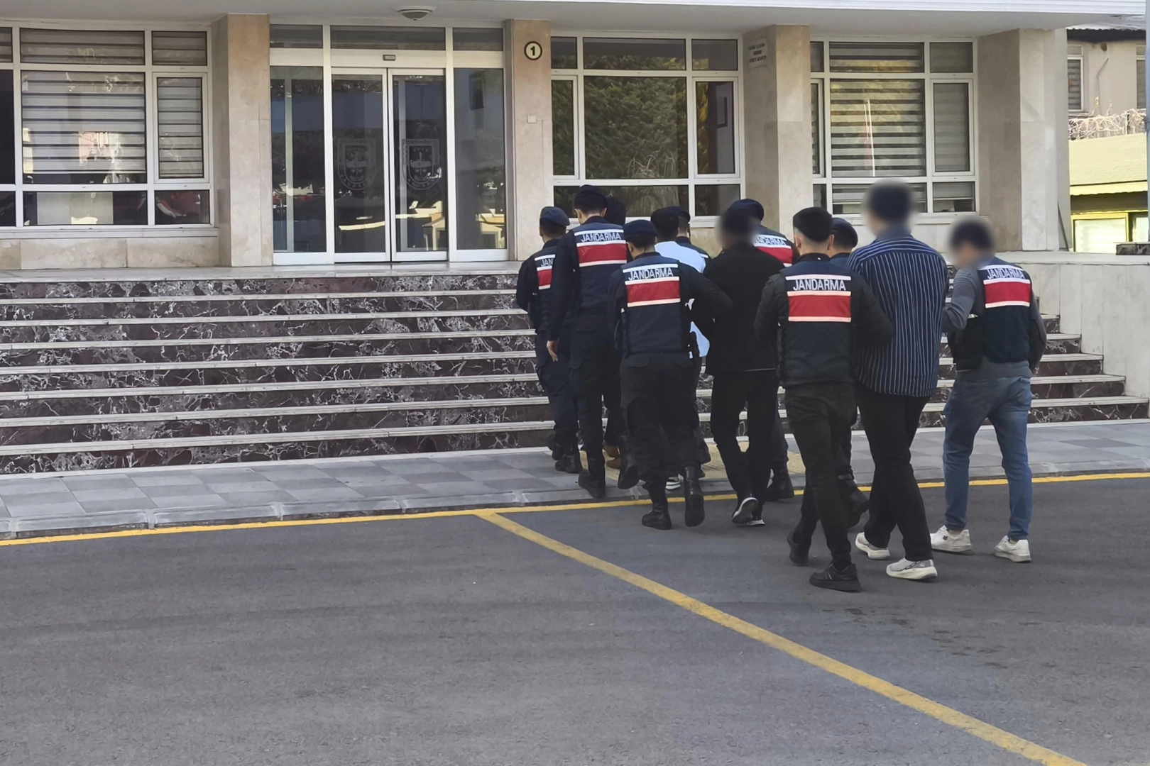 Alınan bilgiye göre, Erdemli ilçesinde 4 kişi, silah zoruyla bir araca bindirilip kırsal alana götürülüp hesaplarındaki paraları, başka hesaplarına aktarılarak ve telefonları alınarak gasp edildi. Şüphelilerin gasp olayını gerçekleştirmesinin ardından bıraktığı mağdurlar durumu jandarmaya bildirdi. Bunun üzerine İl Jandarma Komutanlığı ekipleri çalışma yaptı. Ekiplerin çalışmasında 9 şüpheli belirlendi. Şüphelilerin yakalanması için Cumhuriyet Başsavcılığı koordinesinde 7 adrese eş zamanlı operasyon yapıldı. Operasyonda 9 şüpheli yakalanırken adreslerde yapılan aramada 1 adet tabanca, 2 adet şarjör, 50 adet uyuşturucu hap, esrar ile bir miktar para ele geçirildi. Jandarmada ifadesi alınan 9 şüpheli adliyeye sevk edildi. Mahkemeye çıkartılan şüphelilerden 7’si tutuklandı, 2'si adli kontrol şartıyla serbest kaldı.