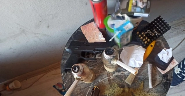 Sobanın içerisinden 433 gram bonzai ve hassas terazi ele geçirildi. Polis ekipleri evde yaptığı detaylı aramada bulduğu 1 adet ruhsatsız tabanca, 18 adet fişek, farklı yerlere saklanmış 5 gram uyuşturucu madde, 3 cep telefonu ve 1 laptopa el koydu. Emniyette işlemleri tamamlanan K.D., adliyeye sevk edildi.