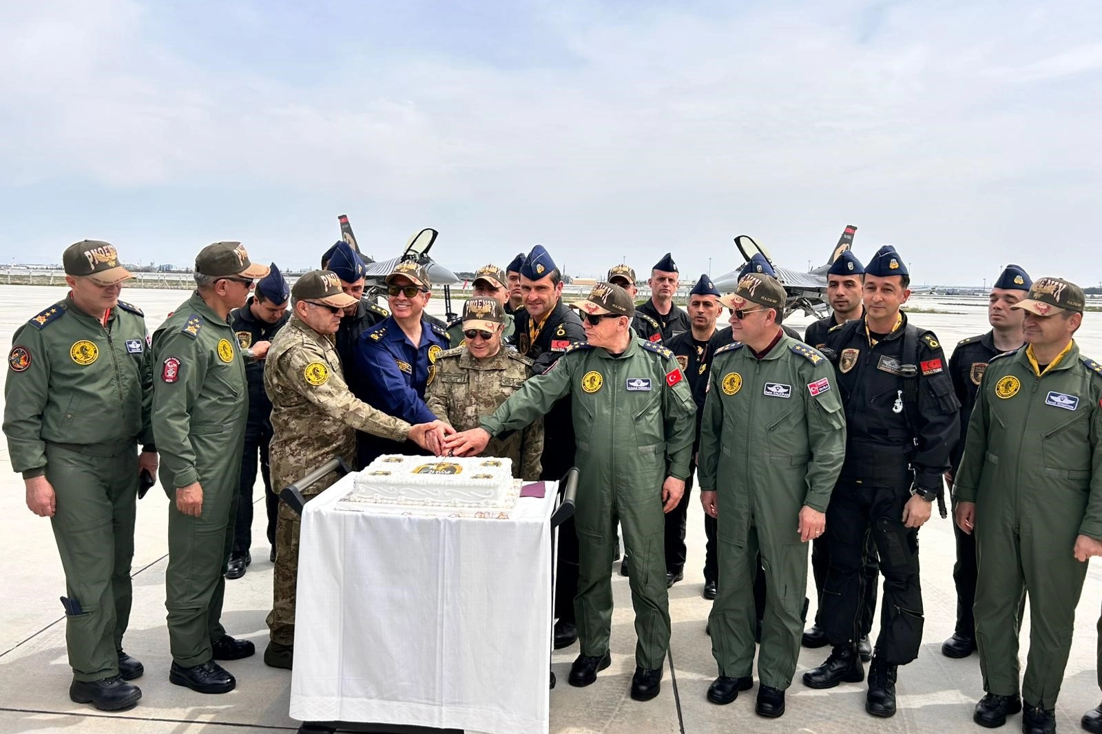Orgeneral Bayraktaroğlu ve beraberindeki heyet, pistte ayrılan özel alanda SOLOTÜRK’ün kuruluşunun 15’inci yılı dolayısıyla düzenlenen gösteri uçuşunu takip etti. İki uçakla icra edilen gösterinin tamamlanmasının ardından aprona yaklaşan SOLOTÜRK uçaklarının önünde toplanan heyet, hazırlanan pastayı kesti.