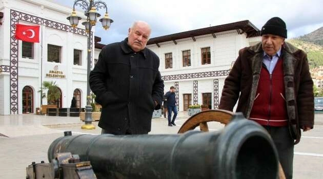 Amasya’da 165 yıllık Ramazan topu kaleden indirilerek yeni belediye binasının önüne konuşlandırıldı. Üzerinde Sultan Abdülmecid’in tuğrası bulunan 1853 tarihli top, kaledeki son ‘balyemez topu’ olarak biliniyordu.