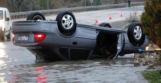 Elazığ’da su birikintisine giren otomobil takla attı. Kazada 3 kişi hafif yaralandı.