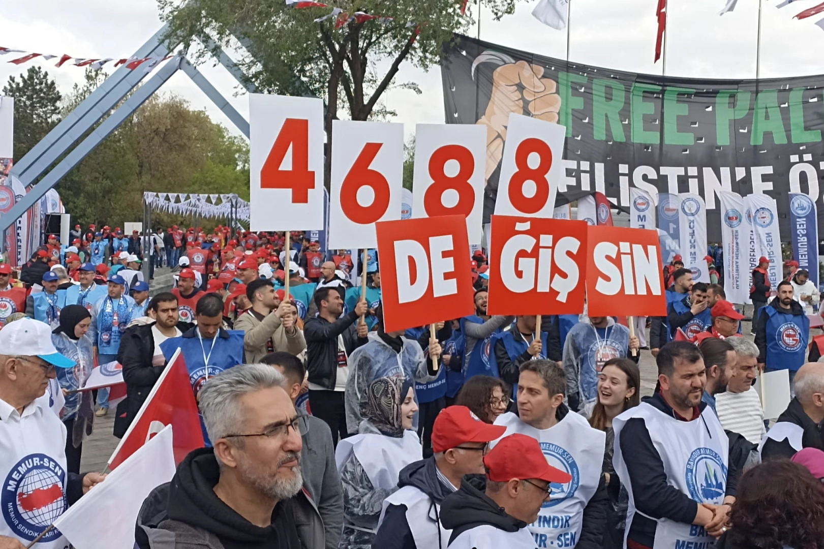 Memur Sendikaları Konfedarasyonu (Memur-Sen), 1 Mayıs Emek ve Dayanışma Günü dolayısıyla Ankara Anıtpark'ta miting düzenledi. Mitinge Memur-Sen Genel Başkanı Ali Yalçın, birçok sendika başkanı ve üyeleri katıldı. Miting Kur'an-ı Kerim tilaveti sonrası açılış konuşmaları ile başladı. İsrail'in 19 aydır Gazze'de çoluk çocuk, genç yaşlı demeden on binlerce insanı katlettiğini vurgulayan Yalçın, "Yaralı sayısı 100 bini geçti. Gazze artık dünyanın en büyük toplu mezarı. 19 aydır meydanlardayız. Gazze'nin, insanlığın vicdanı olduk, olmaya da devam edeceğiz. Dünyanın en zengin yüzde 1'i, küresel servetin yüzde 54'ünü elinde tutuyorsa adalet bunun neresinde? Milyonlarca çocuk açlıktan ölüyorsa merhamet nerede? 3.6 milyar kişi yoksulluk sınırının altında yaşıyorsa vicdan nerede? Bir CEO'nun bir saatte kazandığını bin işçi ömrü boyunca kazanamıyorsa insaf nerede? Bizi teslim almak isteyen bu gidişe örgütlü gücümüzle, dayanışmamızla dur demek için varız. Emeğimizin hakkını almak, sosyal adaleti sağlamak için varız" ifadelerini kullandı. "Tavsiyeye uymanın değil, günü kurtarmanın derdindeyiz" Kültür ve aile değerlerinin saldırı altında olduğunu belirten Yalçın, "İnancımız, geleneğimiz, örfümüz saldırı altında. Küreselciler, modayla, dijital yayınlarla, sosyal medyayla gençleri köklerinden koparıyor, aileyi hedef alıyor. Sapkın lobileri fonluyor, cinsiyetsizleştirme politikalarını dayatıyorlar. Hakikaten aile meselesi bir beka meselesi. Tehlike görüldü, 2025 Aile Yılı ilan edildi. Madem aileyi koruyacağız, madem Aile Yılı, çalışanların aile bütünlüğü sağlansın, insan yavrusuna manda yavrusundan daha fazla teşvik verilsin Aile ve çocuk yardımı sembolik olmaktan çıksın. 'Nüfus hızımız 1.5'in altına düştü, çocuk sayısını artırın' diyorsunuz. Kiraların, çocuk bakım giderlerinin, eğitim masraflarının yüksek olduğu bu zamanda tavsiyeye uymanın değil, günü kurtarmanın derdindeyiz" şeklinde konuştu. "Birinci dereceye gelmiş kamu çalışanlarına 3600 ek gösterge verilmeli" Cumhurbaşkanı Recep Tayyip Erdoğan tarafından 3600 ek göstergenin 4 meslek grubu için müjdelenmiş olduğunu belirten Büro Memur-Sen Genel Başkanı Yusuf Yazgan ise, "3600 ek gösterge uzmanlar, denetmenler, şube müdürleri olmak üzere diğer meslek gruplarına da, genel idare hizmetlerindeki diğer meslek gruplarına da verildi. Tabii bunun yetersiz olduğunu ifade ettik. Çünkü 3600 emeklilikte bir konfor haline geldi. 3600 ek göstergesi olanla olmayan arasında emekli maaşında olsun, emekli ikramiyesinde olsun çok ciddi anlamda bir uçurum var. Dolayısıyla artık birinci dereceye gelmiş tüm kamu çalışanlarına 3600 ek gösterge verilmesi gerekiyor. Bu geçtiğimiz toplu sözleşmede karara bağlanmıştı. Cumhurbaşkanımız bu konuyla ilgili seçim öncesinde müjde vermişti. Çalışma Bakanımız da bu müjdeyi yenilemişti. Biz bunun hayata geçmesini, 3600 ek gösterge dosyasının artık kamu çalışanlarının önünden kapanmasını bekliyoruz. Bu toplu sözleşmede de 3600 yeniden masada olacak" diye konuştu.