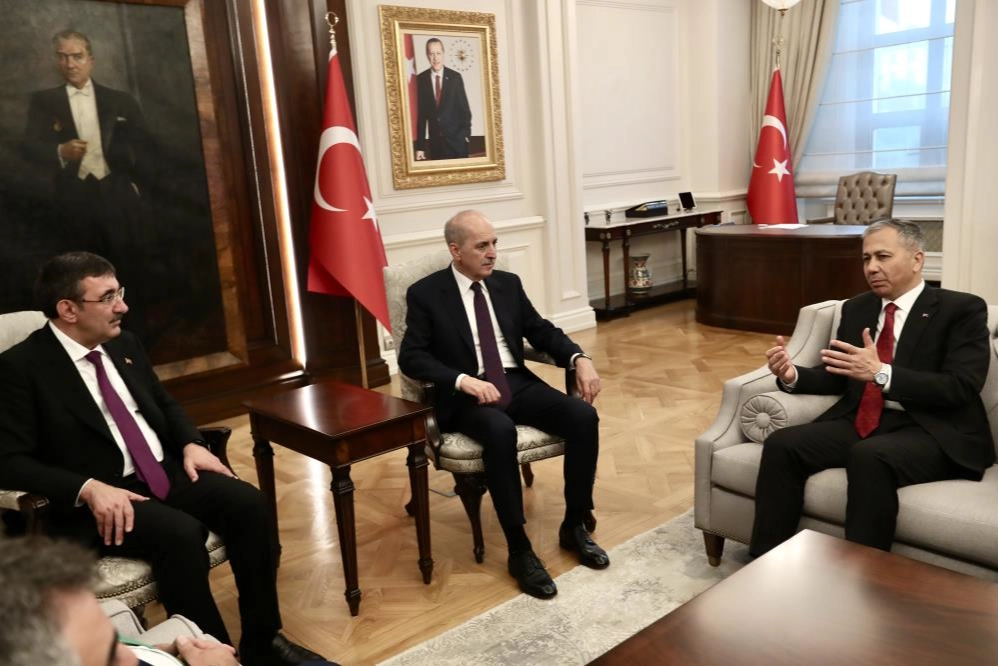 TBMM Başkanı Numan Kurtulmuş, Cumhurbaşkanı Yardımcısı Cevdet Yılmaz ile ziyaret ettiği Bakan Yerlikaya'dan İçişleri Bakanlığı Emniyet Genel Müdürlüğü giriş kapısı önündeki saldırı girişimine ilişkin bilgi aldı. Yaralanan polisler Alim Reis Demirel ve Erkan Karataş için acil şifalar dileyen ve geçmiş olsun dileklerini ileten Kurtulmuş, saldırı girişiminin, polislerin dikkati ve kahramanca verdiği mücadeleyle önlendiğini belirtti. Terör saldırısını şiddet ve nefretle kınadığını belirten Kurtulmuş, yıllardır terörle mücadele etmiş, teröre karşı her alanda başarı kazanmış olan bir milletin evlatları olarak, terörle, teröristle ve arkasındaki bütün unsurlarla mücadelenin her hal ve şart altında sonuna kadar devam edeceğinin mesajını verdi. Ziyarette, Cumhurbaşkanlığı İdari İşler Başkanı Metin Kıratlı, Ankara Valisi Vasip Şahin, İçişleri Bakan Yardımcıları Bülent Turan, Mehmet Aktaş, Mehmet Sağlam, TBMM Genel Sekreteri Talip Uzun, Jandarma Genel Komutanı Orgeneral Arif Çetin, Emniyet Genel Müdürü Erol Ayyıldız, Sahil Güvenlik Komutanı Tümamiral Ahmet Kendir, Ankara Emniyet Müdürü Engin Dinç de yer aldı.