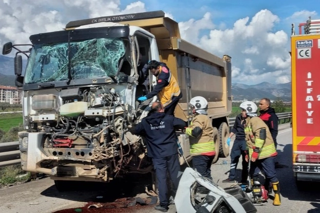 Kaza; Gaziantep - Hatay yolu Hassa ilçesi Ardıçlı Mahallesi mevkiinde yaşandı. Aynı istikamette ilerleyen hafriyat kamyonu, tırla çarpıştı. Kazada araç sürücüsü sıkışarak mahsur kaldı. Yaralı sürücü sıkıştığı yerden itfaiye ekipleri tarafından kurtarıldı. Yaralı sürücü olay yerindeki ilk müdahalenin ardından hastanede tedavi altına alındı. Polis ekipleri kazayla ilgili inceleme başlattı.