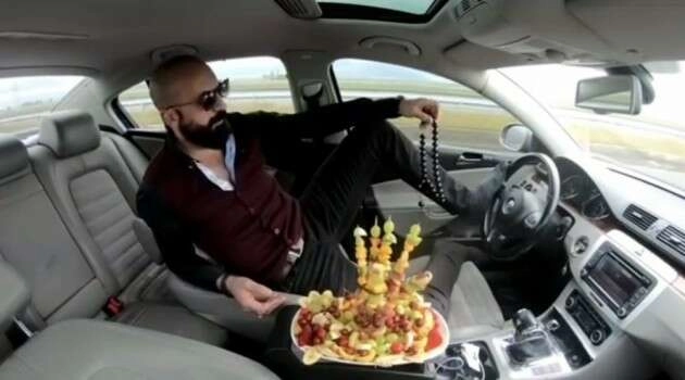 Erzurum’da otomobille seyir halindeyken ayağıyla direksiyonu çevirip yanında kocaman meyve tabağı, elinde tespihle poz veren sürücü ’trafik güvenliğini tehlikeye sokma’ suçundan 5 ay hapis cezasına çarptırıldı.