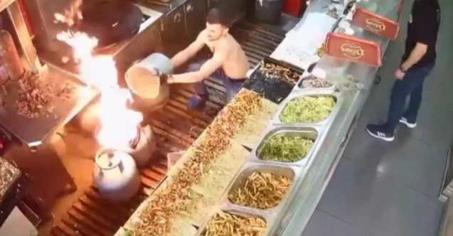 O anları anlatan İş yeri çalışanı Yusuf Kaya, “Tüp değişimi yapıyorduk. Tüpün başlığını çıkartmamıza rağmen gaz durmadı. Yani biz başlığı söktük ama gaz çıkmaya devam ediyordu. Şurada gördüğünüz sac farklı bir tüpe bağlıydı onun ateşiyle beraber yangına sebep oldu. Yangın tüplerimizle söndürdük” diye konuştu.