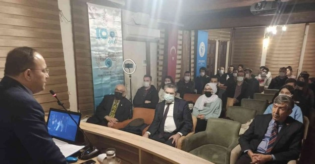 Eskişehir Türk Ocağı’nda, “Türk Konseyinden Türk Devletleri Teşkilatına” konulu bir konferans veren Prof. Dr. Okan Yeşilot, Sovyetler Birliği dağıldıktan sonra ortaya çıkan durumu değerlendirerek Türk Dili Konuşan Ülkeler Zirveleri, Türk Keneşi / Konseyi ve Türk Devletleri Teşkilatının kurulmasına kadar olan süreci ele aldı. Azerbaycan, Kazakistan, Kırgızistan, Özbekistan ve Türkmenistan’ın bağımsızlıklarının 30. yılında devletleşme yolunda attıkları adımları anlatan Yeşilot bu devletlerin karşılaştıkları sorunlarla ilgili bilgiler verdi. Prof. Dr. Okan Yeşilot, 12 Kasım 2021’de kurulan Türk Devletler Teşkilatına giden süreci, ortak; din, dil, tarih, kültür, Türk Ortak Pazarı, Türk Asrı, Türk Devletler Birliği, Turan, hayalden hakikate, köklü geçmiş güçlü gelecek, kök bir gelecek bir ve tek yumruk” kavramları etrafında ele aldı. “Su akar yatağını bulur” diyen Yeşilot, Türk Devletleri Teşkilatını hiçbir devlete ve teşkilata karşı kurulmadığını ifade etti.