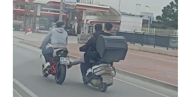 Olay, merkez Osmangazi ilçesi İstanbul Yolu üzerinde meydana geldi.Edinilen bilgiye göre, motosikleti bozulan sürücü çareyi arkadaşının motosikleti ile itmekte buldu. Bozulan motosikletini arkadaşının motosiklet ile iterek tamirciye götürdü. O anlar ise trafikteki başka bir sürücünün kamerasına yansıdı.