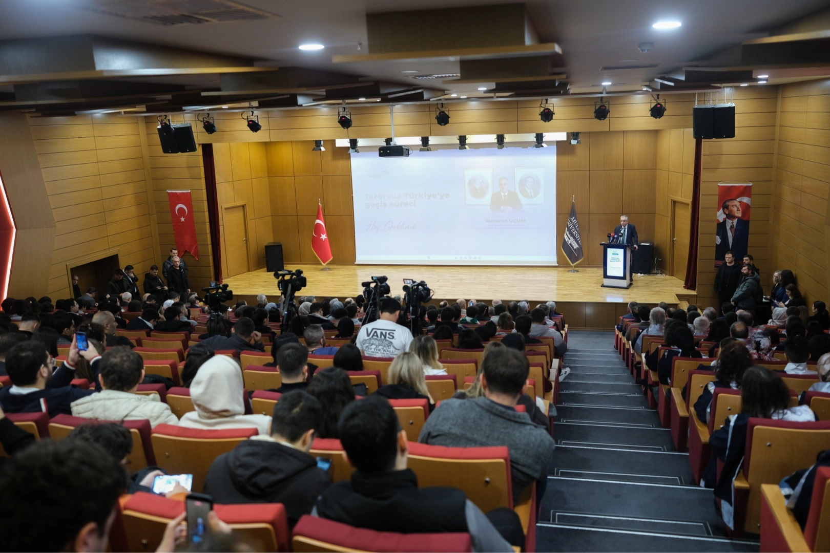 Mudanya Üniversitesi'nin düzenlediği "Terörsüz Türkiye'ye geçiş süreci" adlı konferansın konuğu Cumhurbaşkanı Başdanışmanı Mehmet Uçum oldu. Mudanya Üniversitesi'nde akademisyenler ve öğrencilerle bir araya gelerek Türkiye'nin Terörsüz Türkiye hedefine geçiş aşamasını ve sonrasında elde edeceği kazanımları aktaran Uçum, "Hakikaten bu tarihî bir fırsat; başarmanın eşiğindeyiz ve inanıyorum ki hep birlikte başaracağız" ifadelerini kullandı. "Terörsüz Türkiye arayışı son bir yılın özlemi değildir" Daha önce de Türkiye'yi terörden arındırma girişimleri olduğunu fakat başarısızlıkla sonuçlanan bu girişimlerden alınan derslerle Türkiye'nin tarihi bir fırsat eşiğinde olduğunu vurgulayan Uçum, "Terörsüz Türkiye'ye geçiş süreci, elbette meseleye yakın tarihler açısından bakanlar tarafından bu sürecin 1 Ekim 2024'te başladığı şeklinde değerlendirilebilir. Belki sembolik bir tarih vermek gerekirse, 1 Ekim 2024 bu sembolizm açısından güçlü bir tarihtir. Çünkü 1 Ekim 2024'te Cumhurbaşkanımız, Meclis'in yasama yılı açılışında devletin yeni paradigmasına ilişkin bir yaklaşım ortaya koydu ve Cumhurbaşkanımızın konuşmasından sonra Sayın Bahçeli, hakikaten Türkiye'nin zor dönemlerinde yüksek bir sorumluluk bilinciyle elini taşın altına koyarak çok önemli tutumlar aldı. 1 Ekim 2024'e bu anlamları verebilirsiniz. Ama terörsüz Türkiye özlemi, Terörsüz Türkiye arayışı son bir yılın ya da son 14 ayın arayışı değildir. Cumhurbaşkanı Erdoğan'ın yönetimlerinde özellikle yoğunlaşan "Türkiye'yi terörden arındırmak, Türkiye'yi terör riskinden kurtarmak" çabaları hep önde gelen gündem oldu. Önceki yönetimlerde de Türkiye'yi terörden arındırma konusunda birtakım girişimler olmuştu. 41 yıllık bir süreçten söz ediyoruz. Herkes bir şekilde Türkiye'yi terörden arındırmak, terör riskinden kurtarmak için bir çaba içerisine girmişti. Ama bu çabaların giderek yoğunlaştığı dönem, Cumhurbaşkanımız Erdoğan'ın yönetimlerinde gerçekleşen girişimlerle ortaya çıktı" ifadelerini kullandı. "Terörsüz Türkiye ‘Kürt meselesinin' çözümü olarak bağdaştırılmamalı" Terörsüz Türkiye hedefinin Kürt meselesi diye tabir edilen sorunun çözümü olarak düşünmenin doğru olmadığını, sistematik terörün fiilen sona erdirilmesi anlamına geldiği belirten Uçum, "Bu 14 aylık süreçte ne oldu, ne kazandık, bunları da değerlendirmek gerekiyor. Birincisi; devlet bu konuyu ele alınca, Cumhurbaşkanımızın ülke liderliğinde, Bahçeli'nin cesur kararı ve siyasi liderliğinde, Cumhur İttifakı'nın ve toplumun diğer kesimlerinin büyük desteğinde, DEM yönetiminin soğukkanlı, ölçülü ve yapıcı yaklaşımlarıyla sonuçta bir süreç yönetildi. Ama devlet bu konuyu ele alırken nasıl ele aldı, bunun altını çizmek istiyorum. Devlet, terörsüz Türkiye konusunu bir devlet inisiyatifi olarak başlattığında bunu bir "Kürt meselesi" olarak ele almadı. Bunun altını özellikle çizmek istiyorum. Bu tamamen sistematik terörün sona erdirilmesi, terör örgütünün fiilen ortadan kaldırılması, demokratik siyaset alanının açılması, demokratik siyaset üzerindeki terör vesayetinin kaldırılması konusu olarak ele alınmalıdır. Bu iki şeyin birbirine karıştırılmaması gerekiyor. Türkiye'de bir Kürt meselesi tartışması öteden beri hep oldu. Ama terörsüz Türkiye hedefine yönelik devlet politikası, Kürt meselesinin çözümüne yönelik bir devlet politikası olarak asla değerlendirilmemelidir. Çünkü Türkiye'de "Kürt meselesi" diye tarif edilen konu aslında geçmişe ait bir sorundur" şeklinde konuştu. "Terörsüz Türkiye hedefi, kimlik esaslı bir sorun üzerinden ele alınan bir konu değildir" Kimlik hakları üzerinden yapılan yorumları fikri sabotaj olarak değerlendirdiklerini kaydeden Uçum, "Türkiye'de geçmişte kötü pratiklerin yaşandığı, kimliğin reddine dayalı bazı uygulamaların olduğu dönemler artık geride kalmıştır. Elbette demokrasinin geliştirilmesi, genişletilmesi, ufuk reformları, yeni anayasa çerçevesinde toplumun tüm kesimlerine ilişkin çok daha önemli hak ve özgürlükler tarif edilebilir; mevcut hak ve özgürlükler geliştirilebilir. Bunlar artık Türkiye toplumunun tamamına ait konular olarak ele alınır ve değerlendirilir. Bunlar içerisinde elbette Kürt vatandaşlarımızın talepleri de bir kimlik esası üzerinden değil, bu toplumun yurttaşları olarak dikkate alınır. Demokrasi geliştirme meselesi, hukuksal reformlar yapma meselesi, hukuku güçlendirme meselesi ayrı bir mecradır; tüm Türkiye toplumuna, Türk milletinin tamamına aittir. Fakat terörsüz Türkiye hedefi, kimlik esaslı bir sorun üzerinden ele alınan bir konu değildir. Sistematik terör sona erdirilecek, terör örgütü fiilen ortadan kalkacak, kimlik istismarı üzerinden yapılan hukuk dışı faaliyetler sona erecek; siyaset üzerindeki terör, kültür alanları üzerindeki terör, din alanları üzerindeki terör tamamen ortadan kalkacaktır. Terörsüz Türkiye hedefi böyle bir projedir. Terörsüz Türkiye hedefini, Kürt sorununun çözümüne ilişkin bir proje gibi gösterip kimlik hakları üzerinden birtakım müzakereler yürütmeye çalışanlar bu işin nitelik farkını görmüyor ya da bilinçli olarak karıştırıyorlar. Terörsüz Türkiye hedefinin Kürt meselesiyle bu anlamda bir bağlantısı olmadığı için ve bugün dünyamızda geçmişte kaldığını söylediğimiz nitelikte bir Kürt meselesi olmadığı için terörsüz Türkiye hedefiyle Kürt vatandaşlarımızı özdeşleştirip onların demokratik taleplerini bir kimlik grubu üzerinden buraya bağlayan yaklaşımları riskli fikir manipülasyonları olarak görüyoruz. Hatta bunun üzerine yapılan yorumların sürece yönelik fi