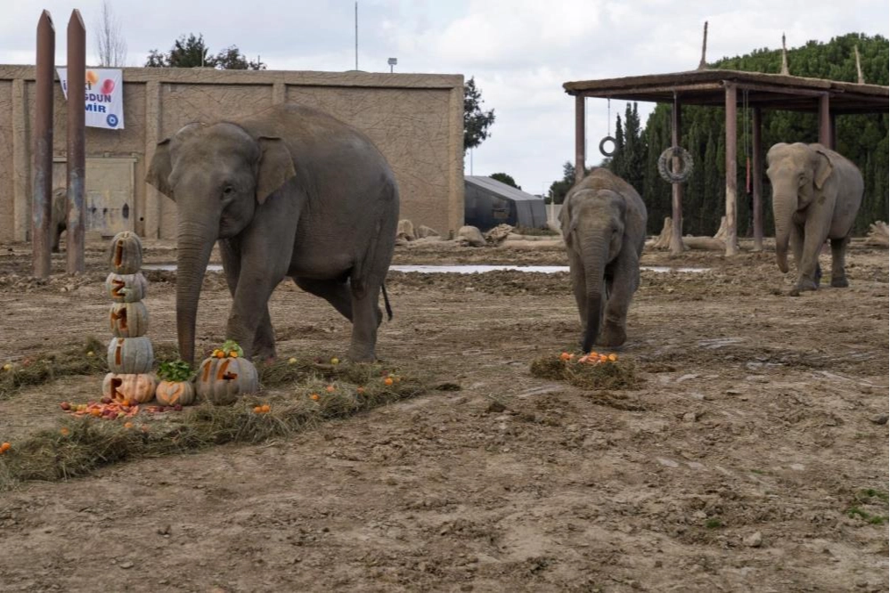 İzmir Büyükşehir Belediyesine bağlı İzmir Doğal Yaşam Parkı'nda doğum günü coşkusu yaşandı. Türkiye’nin tek fil ailesine ev sahipliği yapan parkta yaşamını sürdüren Begümcan ve Winner çiftinin kızlarından olan ve Türkiye’de dünyaya gelen ilk fil olan İzmir’in 14. yaş günü kutlandı. İzmir, kardeşleri Deniz ve Ege’nin de katıldığı kutlamada, bal kabağı, elma, havuç gibi meyveler ve yoncadan yapılan pastayı, büyük bir iştahla yedi. Parkın ziyaretçileri de kutlamaya alkışlarla eşlik etti. "İzmir bizim için çok önemli" Kutlamalara katılan İzmir Büyükşehir Belediyesi Genel Sekreter Yardımcısı Prof. Dr. Pınar Okyay, çok heyecanlı olduklarını söyledi. Okyay, "Coşkuluyuz. İzmir’imiz, Türkiye’de doğan ilk Asya fili. Türkiye’de ilk ve tek olan fil ailesinin en güzel kızlarından birinin yaş gününü kutluyoruz. İzmir bizim için çok önemli. Son derece uysal bir kız. Annesi ve kardeşleri ile aynı ortamda yaşıyor. Çok mutluyuz. Güzel bir an. Herkesi bu güzel fil ailesini görmeye İzmir Doğal Yaşam Parkı’na bekliyoruz" dedi. "Ayak bakımları çok önemli" Fil ailesinin ayak ve tırnak bakımları periyodik olarak yapılıyor. Yine bu özel günde İzmir filin ayak bakımı, Veteriner Hekim Gözde Budak Taşçı tarafından yapıldı. Taşçı, "Haftanın iki günü ayak bakımlarını özenle yapıyoruz. Filler çoğu hastalığı ayaklarından alır. Bu yüzden ayak bakımına ayrı özen gösteriyoruz" diye konuştu. "İzmir’de böyle bir bebeğin dünyaya gelmesi çok güzel bir olay" İzmir’in doğum günü için Doğal Yaşam Parkı’na gelen Yaren Büyükmumcu da fil İzmir doğduğunda yapılan isim anketine katılanlar arasında yer aldığını belirtti. Büyükmumcu, "O zaman eski bir bilgisayarım vardı ve ben de oy vermiştim. İzmir ismi de kendisine çok yakıştı. Bugün doğum günü olunca gelmek istedim. Bazı insanlara hayvanların doğum gününü kutlamak tuhaf gelebilir ancak bence çok güzel bir olay. Çünkü hatırlıyorum İzmir’in doğması büyük bir olaydı. Fillerin nesli tükenme tehlikesi altında. O nedenle İzmir’de böyle bir bebeğin dünyaya gelmesi, çok güzel bir olay. Kutlamaya değer buluyorum" dedi. "İzmir’in doğum günü için geldim" Ziyaretçilerden Yamaç İnak da üç köpeği olduğunu ve her yıl onların doğum gününü kutladığını ancak ilk kez bir filin doğum günü partisine katıldığını vurguladı. İnak, çok güzel bir gün geçirdiğini belirterek, "Fil İzmir'in doğum gününü kutlamak için geldim. Benim için çok güzel bir anı oldu. Daha önce bir filin doğum günü kutlamasına katılmamıştım. O da çok heyecanlıydı" ifadelerini kullandı. Pasta kesildi Fil İzmir'in pastasını yedikten sonra babası Winner'ın bulunduğu alana doğru hızla gitmesi dikkat çekti. Program kapsamında, park çalışanları da üzerinde "İlk göz ağrımız İzmir, İyi ki doğdun" yazılı pasta kesti. "Begümcan", "Winner" ve yavruları "İzmir", "Deniz" ve "Ege"den oluşan Türkiye'nin ilk fil ailesi, İzmir Doğal Yaşam Parkı'nda hayatlarını sürdürüyor.