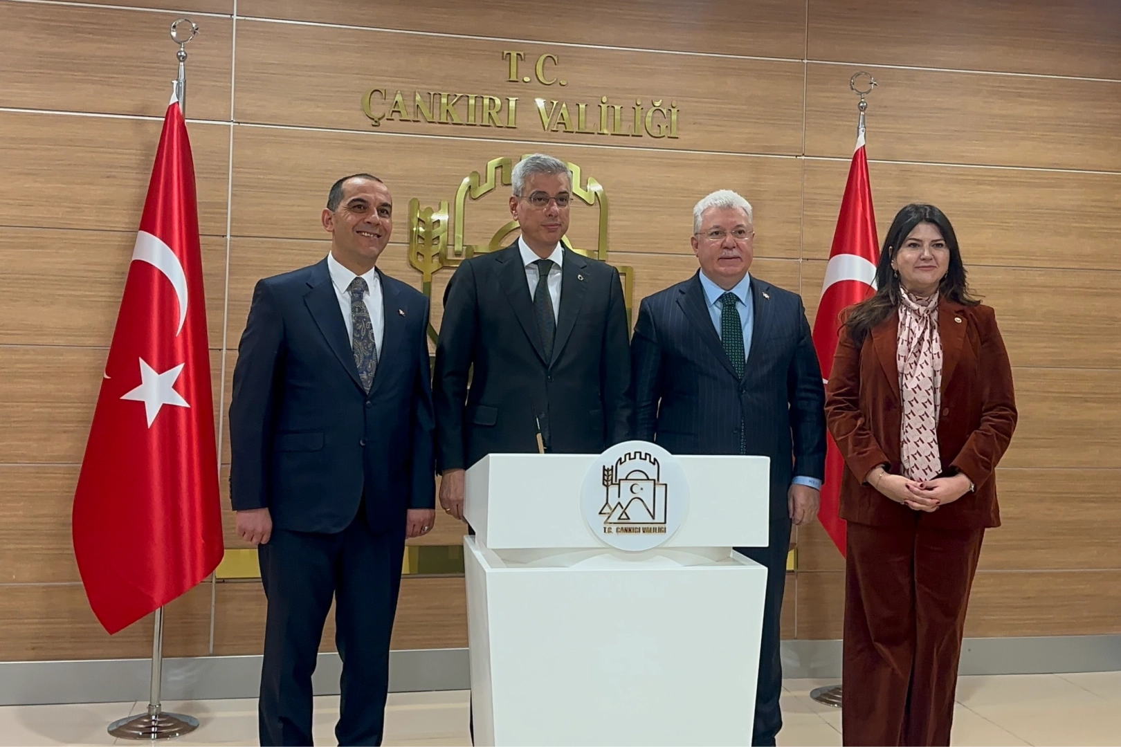 Bakan Memişoğlu, "Sağlıklı Türkiye Yüzyılı" kapsamında 64'üncü il olarak Çankırı'yı ziyaret etti. İlk olarak Vali Mustafa Fırat Taşolar'ı makamında ziyaret eden Bakan Memişoğlu, kentteki çalışmalarla ilgili bilgi aldı. Memişoğlu, ziyareti sırasında yaptığı açıklamada Türkiye yüzyılında sağlık alanında önemli yatırımlara imza attıklarını ifade etti. "400 yataklı hastanemizi inşallah 2026'da milletimizin hizmetine sunacağız" "Sağlıklı Türkiye Yüzyılı" kapsamında 64'üncü il olarak Çankırı'yı ziyaret ettiklerini ifade eden Bakan Memişoğlu, "Çankırı'da 16 tane birinci basamak, 13 adet ikinci basamak olmak üzere şimdiye kadar 29 sağlık tesisi hizmete açtık. Sağlıkla ilgili Çankırı iyi yerlere geldi. Bugün Çankırı'da 400 yataklı hastanemizin inşaatını belli bir seviyeye ulaştırdık. İnşallah bunun yanında 2 adet birinci basamak ve 1 adet ikinci basamak olmak üzere toplam 3 sağlık tesisinin inşaatı da sürüyor. Çankırı'da 400 yataklı hastanemizin inşaatını belli bir seviyeye ulaştırdık. İnşallah 2026'da milletimizin hizmetine sunacağız. Bu hastanemiz hizmete geçtiği zaman yaklaşık 700 yataklı eğitim ve araştırma hastanesi fonksiyonu görebilecek fiziki sağlık altyapısına kavuşmuş olacak. Sağlıkla ilgili hastasının çevreye gitmeyeceği, kendisi sağlıkla ilgili her türlü hizmeti alabilecek hale gelecek. Bu sağlık hizmetinin Çankırı'ya kazandırılmasında emeği geçen herkese teşekkür ediyorum" dedi. "Türkiye'de üretilen ileri teknoloji cihazlarını sağlık sistemimizde kullanır hale geliyoruz" Türkiye'nin sağlık altyapısını yerli cihazlarla güçlendirdiğini vurgulayan Bakan Memişoğlu, "Sayın Cumhurbaşkanımızın liderliğinde Türkiye sağlık altyapısı anlamında dünyanın en iyi sağlık altyapısına kavuşmuş durumda. Türkiye yüzyılı dediğimiz vizyonumuzu gerçekleştirme aşamasındayız. Aselsan'ın ürettiği tamamen yerli mühendislerimizin oluşturduğu cihazlarımızı teslim aldık. Artık Türkiye de kendi sağlık cihazlarını üretip, teknolojisini yapabilir hale geldi. Dün 30 tane röntgen cihazımızı teslim aldık. Bundan sonra da Türkiye'de üretilen ileri teknoloji cihazlarını sağlık sistemimizde kullanır hale geliyoruz" diye konuştu.