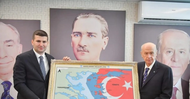 Ülkü Ocakları Eğitim ve Kültür Vakfı Genel Başkanı Ahmet Yiğit Yıldırım tarafından Milliyetçi Hareket Partisi (MHP) Genel Başkanı Devlet Bahçeli’ye hediye edilen ‘Denizlerdeki Misak-ı Millimiz’ adlı harita, NFT (Nitelikli Fikri Tapu) şeklinde düzenlendi.