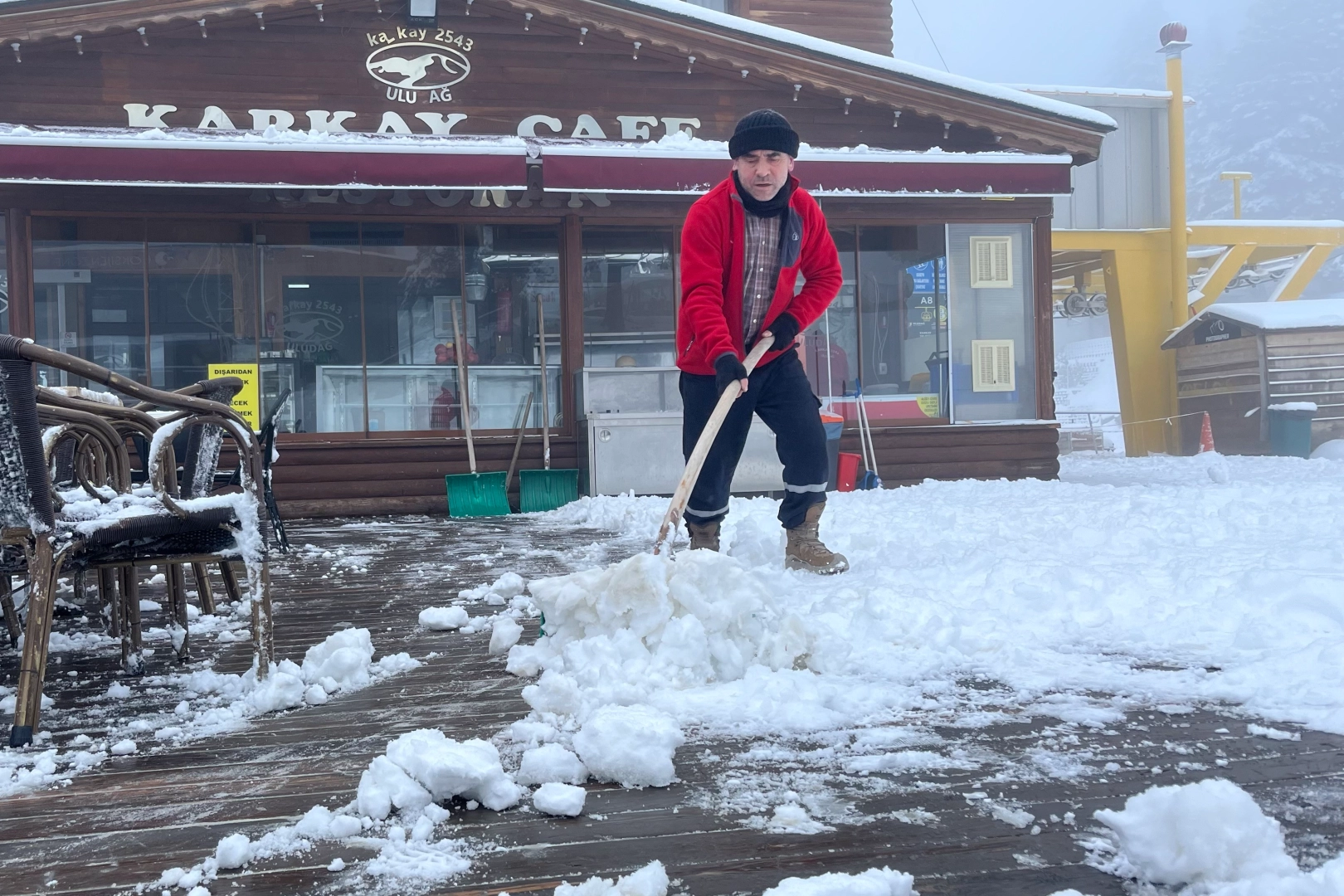 Kayak ve kış turizminin önemli merkezlerinden olan Uludağ'da kar kalınlığı 10 santimetreye yaklaştı.