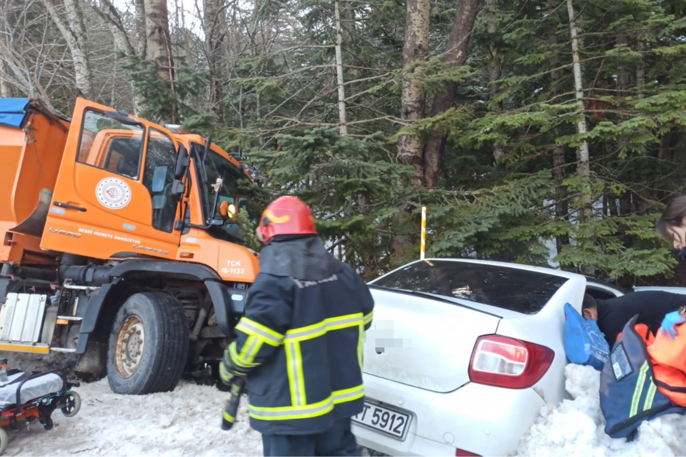 Edinilen bilgiye göre kaza, Bursa Uludağ yolu üzerinde meydana geldi. Kar temizleme çalışması yapan kar küreme aracı, sürücüsünün direksiyon hakimiyetini kaybetmesi sonucu seyir halindeki otomobille çarpıştı. Çarpışmanın etkisiyle otomobil yoldan çıkarak şarampole doğru savruldu. İhbar üzerine olay yerine sağlık ve kurtarma ekipleri sevk edildi. Araçta sıkışan yaralılar ekiplerin dikkatli çalışması sonucu bulundukları yerden çıkarıldı. İlk müdahaleleri olay yerinde yapılan 2 yaralı, ambulanslarla çevredeki hastanelere kaldırıldı. Kazayla ilgili inceleme başlatıldı.