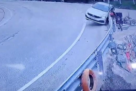 Uludağ yolundan şehir merkezine seyreden bir otomobil virajı alamayarak bariyerlere çarptı. O anlar güvenlik kamerasına yansıdı.