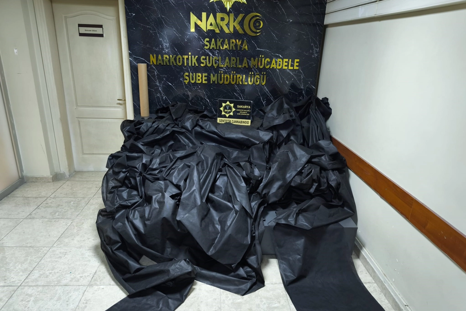 Sakarya Cumhuriyet Başsavcılığının koordinesinde, İl Emniyet Müdürlüğü Narkotik Suçlarla Mücadele Şube Müdürlüğü ekipleri, H.S. (28) ve M.S. (34) isimli 2 şahsın uyuşturucu madde sattığını tespit etti. Şüpheliler gözaltına alınırken, üstlerinde ve araçlarında yapılan aramada, 21 parça halinde sentetik cannabinoid ham maddesine emdirilmiş 4 bin 200 içimlik ince siyah kumaş, 1 milyon 364 bin içimlik olarak kullanılacak rulo şeklindeki siyah ince kumaş, uyuşturucu maddeyi kumaşa emdirip parçalara ayırmak için kullanıldığı düşünülen makas, uyuşturucu madde ticareti yapıldığına dair sentetik cannabinoid hammaddesi ve benzeri görüntülerinin bulunduğu 2 cep telefonu, uyuşturucu madde ticaretinden elde edildiği değerlendirilen 2 bin 500 TL ele geçirildi.
