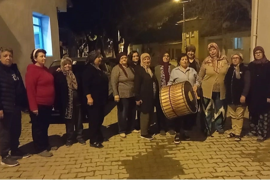 Bergama ilçesi Kadıköy Mahallesi'nde sahur vaktinde davul çalma geleneği bir kaç yıldır yapılmıyor. Mahallenin 61 yaşındaki muhtarı Levent Atlayan bu geleneği tekrar yaşatmak için kolları sıvadı. İlk birkaç gün vatandaşları sahura kaldıran davulcular iddiaya göre eski muhtarın baskısından dolayı çalmayı bıraktı. Sahur vaktinde davul çalınmadığını gören kadınlar ise ramazan geleneğinin yaşatılması için bir araya gelip mahalleliyi sahura kaldırmak istedi. Davulu eline alan mahallenin gönüllü kadınları, maniler eşliğinde davul çalarak vatandaşları sahura uyandırmaya başladı. "Eski muhtarın baskısından bıraktılar" Ramazan dolayısıyla davulculardan sahur vaktinde davul çalınmasını istediğini belirten muhtar Levent Atlayan, "Davulcularımız belli bir zaman sonra davul çalmaktan vazgeçtiler. Sebebi ise davulun sesinden değil de davulun çalınmasından rahatsız olan eski muhtarın baskısı. Bu yaşanan duruma tepkisiz kalmayan bizim tarafımızdaki kadınlar da ‘Biz bu yola çıktıysak hep beraber başlayalım ve davulu çalalım' dedi. Şimdi mahallenin kadınları her akşam çıkıp ve davulu çalıyorlar. Grup halindeki kadınlar bütün köyü bir ucundan bir ucuna gezdikten sonra hep birlikte sahurlarını yapıp evlerine dağılıyorlar" ifadelerini kullandı. "Kadınlarımız camlardan bize sesleniyor" Bu geleneği yaşatmak adına ramazan ayının son gününe kadar davul çalacaklarını belirten muhtar azası Nurşen Örnek (57), "Öncelikle bu görevi köyümüzün gençlerine, erkeklerine verelim dedik. Kendileri 3-4 akşam çaldılar fakat daha sonra herhalde eski muhtardan dolayı davul çalmayı bıraktılar. Sonra biz kadınlar olarak toplandık ve düşündük "biz yapar mıyız bu işi?" diye ve kendi aramızda her gece davul çalma kararı aldık. Başta muhtarımızın eşi Sevda Hanım ve bütün arkadaşlar belli bir noktada toplanıyoruz. Daha sonra köyümüzün sokaklarını dolaşarak davulumuzu çalıyoruz. Kadınlarımız camlardan bize sesleniyor, alkışlıyorlar. Ardından dönüşte kafemizde toplanıp hepimizin getirdiği kahvaltılık malzemeleri paylaşarak sahurumuzu yapıyoruz. Bu bizim kültürümüz, davul çalmak atalarımızdan dedelerimizden gelen bir kültür. Bunu da biz burada canlandırmaya çalışıyoruz. Kadınlar olarak her alanda varız diyoruz" dedi.