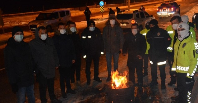 KARS (İHA) – Kars’ın Sarıkamış ilçesinde yılbaşı gecesi eksi 25 derecede polis ve jandarma ekipleri görevlerini aralıksız sürdürüyor. Soğuk havada üşüyen ekipler ateş yakarak ısındı.