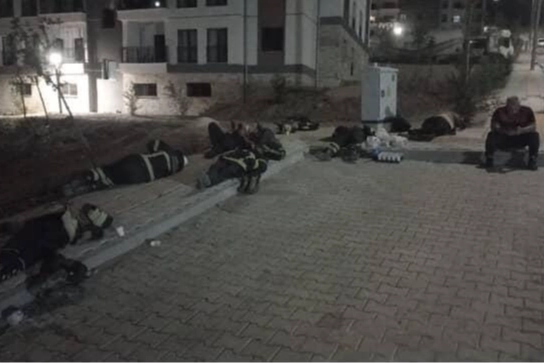 Antakya ilçesi Karaali Mahallesi’nde başlayan ve saatler süren mücadeleyle kontrol altına alınan yangında ‘Yangın Savaşçıları’ zorlu şartlarda mesai yaptılar. Gece ve gündüz demeden saatlerce mücadele eden ekipler, yangının 36 saat süren mücadeleyle kontrol altına alınmasıyla yerlere ve banklara uzanarak uyudular. Hatay Büyükşehir Belediyesi itfaiye ekiplerinin zorlu mücadele sonrası dinlendikleri anlar cep telefonuyla vatandaşlar tarafından görüntülendi.