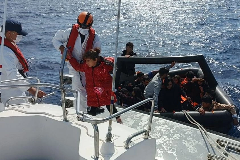 Denizin ortasında çaresizce kurtarılmayı bekleyen kaçak göçmenleri, Sahil Güvenlik Komutanlığı ekipleri kurtarıyor. Sahil Güvenlik ekiplerince paylaşılan görüntülerde, can salı içindeki 13’ü çocuk toplam 24 kaçak göçmenin dalgalar arasında deniz ortasında mahsur kaldığı görülüyor. Çanakkale’nin Ayvacık ilçesinden lastik bot ile denize açılan ve umuda yolculuk için Yunanistan’ın Midilli Adası’na geçiş yapmak isteyen kaçak göçmenler, iddiaya göre Midilli Adası’na yaklaştıkları sırada Yunan Sahil Güvenlik ekiplerince durduruldu. Can salı içindeki aralarında çocuklarında bulunduğu kaçak göçmenleri Yunan Sahil Güvenliği, Türk kara sularına geri iterek, ölüme terk etti. Sahil Güvenlik Kuzey Ege Grup Komutanlığı ekipleri, Ayvacık açıklarında lastik bot içerisinde bir grup kaçak göçmen olduğu bilgisi üzerine harekete geçti. Sahil Güvenlik Botu ‘TCSG-28’ tarafından Yunan Sahil Güvenlik ekiplerince Türk kara sularına geri itilerek ölüme terk edilen lastik bot içindeki 13’ü çocuk toplam 24 kaçak göçmen kurtarıldı. Kaçak göçmenler, işlemlerinin ardından Ayvacık ilçesindeki Yabancıları Geri Gönderme Merkezi’ne teslim edildi. Sahil Güvenlik ekiplerince paylaşılan görüntülerde, can salı içindeki 13’ü çocuk toplam 24 kaçak göçmenin dalgalar arasında deniz ortasında mahsur kaldığı görülüyor.