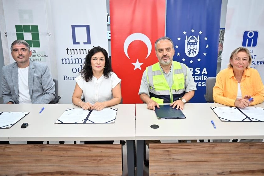 Konuşmaların ardından iş birliği protokolü Başkan Alinur Aktaş ile Mimar Odası Bursa Şube Başkanı Şirin Rodoplu, Şehir Plancıları Odası Bursa Şube Başkanı Murat İlkme ve İnşaat Mühendisleri Odası Bursa Şube Başkanı Ülkü Küçükkayalar arasında imzalandı.