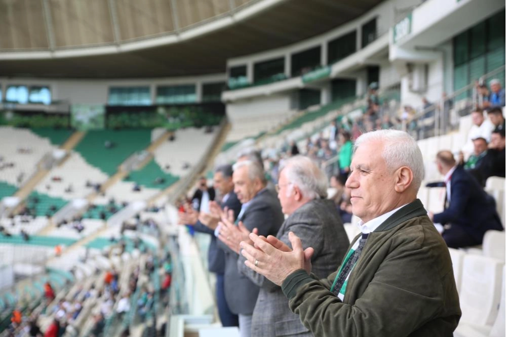 Bursa Büyükşehir Belediye Başkanı Mustafa Bozbey, Bursaspor ev sahipliğinde 100. Yıl Atatürk Stadyumu’nda gerçekleşen Bursaspor - 1461 Trabzon FK maçını stadyumdan takip etti. Stadyumda maçı takip eden Başkan Bozbey’e Cumhuriyet Halk Partisi İl Başkanı Nihat Yeşiltaş, Nilüfer Belediye Başkanı Şadi Özdemir, Bursaspor Yönetim Kurulu Başkanı Sinan Bür, Bursaspor Taraftarlar Derneği Başkanı Kemal Gürmen de eşlik etti. “Bursaspor’a destek, Bursa’ya destek demek” Bursa Büyükşehir Belediye Başkanı Mustafa Bozbey, BUSKİ’de gerçekleşen mazbata törenindeki açıklamasında tebrik için çiçek gönderilmemesini bunun yerine Bursaspor’a bağış yapılmasını istemişti. Tarihi Belediye Binası’nda gerçekleşen devir teslim töreninin ardından mesaiye başlayan Başkan Bozbey, Bursaspor’u, 1461 Trabzon FK karşısındaki mücadelesinde yalnız bırakmadı. 100. Yıl Atatürk Stadyumu’nda gerçekleşen Bursaspor - 1461 Trabzon FK maçını stadyumdan takip eden Başkan Bozbey, kentin marka değeri olan Bursaspor’un Bursa’dan ayrı düşünülemeyeceğini, her zaman Bursaspor’un yanında olacaklarını söyledi. Maç skorundan duyduğu üzüntüsünü de dile getiren Başkan Bozbey, Bursaspor’un Süper Lig’e yükselmesi adına kent yöneticileri olarak takımı destekleyeceklerini, bu kapsamda çeşitli proje ve çalışmalar da yürüteceklerini ifade ederek, “Bursaspor'umuzu yalnız bırakmayacağız. Gerçekten Bursaspor, bu kentin marka değeridir. Onun için bu kentte doyan ya da doğan herkesin Bursaspor'a sahip çıkması lazım. Biz de kent yöneticileri olarak mutlaka Bursaspor'a sahip çıkacağız, destek vereceğiz. Bursaspor yine o eski günlerine, Süper Lig’de yine şampiyonluğa oynayan bir takım olduğu günlere geri dönecek. Buna inanıyoruz ve bu inanç doğrultusunda yöneticilerle görüşmeler gerçekleştiriyoruz. Önümüzdeki dönem için Bursaspor'u şaha kaldıracak, bir üst lige taşıyacak hazırlıklar yapıp projelerimizi ortaya koyacağız” dedi. “Bursa, Bursaspor ile birlikte yükselecek” Bursaspor’un, Avrupa’da tanınan bir takım haline gelmesinin Bursa’nın tanınırlığına da katkı sunacağını belirten Başkan Bozbey, “Büyükşehir Belediyesi olarak Bursa’mızı, Türkiye’nin ve Avrupa’nın önde gelen şehirlerinden biri haline getirmek istiyoruz. Bu manada kentimizin marka değeri olan Bursaspor’umuza gerekeni yapıp sahip çıkalım ve destek verelim. Bursa, Bursaspor’la birlikte yükselecek. Çünkü marka değerimize sahip çıkmak, Bursa'ya sahip çıkmak demektir. Bursaspor'u belli bir yere, Süper Lig’de şampiyonluğa oynayacak konuma getirdiğimizde, Avrupa'da tanınan bir takım haline getirdiğimizde Bursa'yı da tanıtmış olacağız. Biz bunu hedefliyor ve bunu başaracağımıza yürekten inanıyoruz. Birlikte bu kenti yukarıya hep beraber, Bursa halkıyla beraber taşıyacağız. Hiç kimse merak etmesin, Bursaspor eski günlerine dönecek” ifadelerini kullandı. Başkan Bozbey, 100. Yıl Atatürk Stadyumu’nda maçı seyretmeye gelen vatandaşlarla sohbet edip fotoğraf çektirdi.