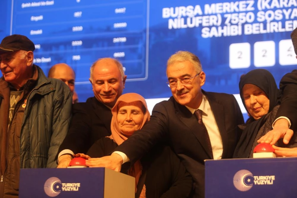 Çevre, Şehircilik ve İklim Değişikliği Bakanlığı ile Toplu Konut İdaresi Başkanlığı (TOKİ) tarafından yürütülen 500 Bin Sosyal Konut Projesi kapsamında, Bursa genelinde inşa edilecek 17 bin 225 konutun hak sahipleri kura yöntemiyle belirlenmeye başlandı.