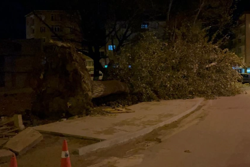 Olay, saat 02.00 sıralarında Cuma Mahallesi Atatürk Bulvarı üzerinde meydana geldi. Etkisini artıran şiddetli lodos nedeniyle ayakta duramayan tarihi 2 çınar kökünden koparak caddeye devrildi. İlçenin en işlek caddesi bir süreliğine ulaşıma kapandı. Olay yerine gelen polis ve zabıta ekipleri, güvenlik önlemi aldı. Belediye ekipleri ağaçları parçalayıp, olay yerinden kaldırdı. Yaklaşık 2 saat sonra cadde ulaşıma açılırken yaşanan olayda şans eseri kimse yara almadı.