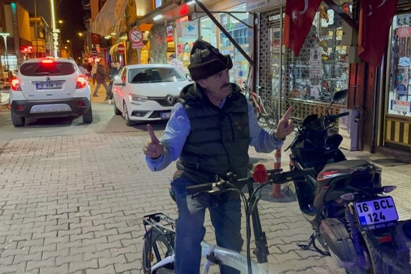 Bursa’nın İznik ilçesinde Bağımsız Belediye Başkan adayı Harun Doğru, başında Osmanlı Alplarının taktığı börkü, altında da 'makam aracım' dediği bisikletiyle kahve kahve gezip oy istiyor.