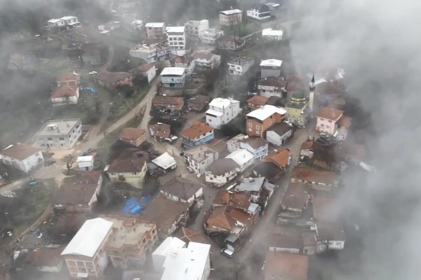 Bursa'nın Osmangazi ilçesindeki yüksek rakımlı Gökçeören Mahallesi bulutların arasında eşsiz bir manzara oluşturdu. Adeta Trabzon yaylalarını andıran görsel şölen dronla havadan görüntülendi.