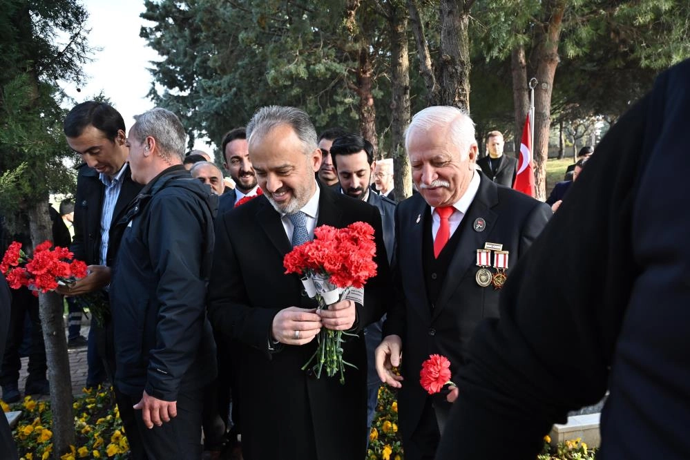Çanakkale Zaferi’nin 109’uncu yıldönümü tüm yurtta farklı etkinlikle kutlanırken, Bursa’da düzenlenen törenlerde şehit ve gaziler anıldı. Bursa Valiliği tarafından düzenlenen 18 Mart Şehitler Günü programında ilk etkinliklerin adresi Hamitler Şehitliği oldu. Bursa Valisi Mahmut Demirtaş ve Bursa Büyükşehir Belediye Başkanı Alinur Aktaş ile Bursa protokolü ve şehit ailelerinin de katıldığı etkinlikte, çelenk sunumları, saygı atışı, İstiklal Marşı’nın okunması ve Türk Bayrağı’nın göndere çekilmesinin ardından şehitler dualarla anıldı. Bursa Büyükşehir Belediye Başkanı Alinur Aktaş, Vali Mahmut Demirtaş ile birlikte şehit mezarlıklarına karanfil bırakarak, şehit ailelerine çiçek takdiminde bulundu.